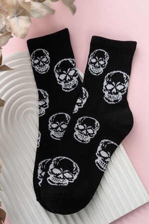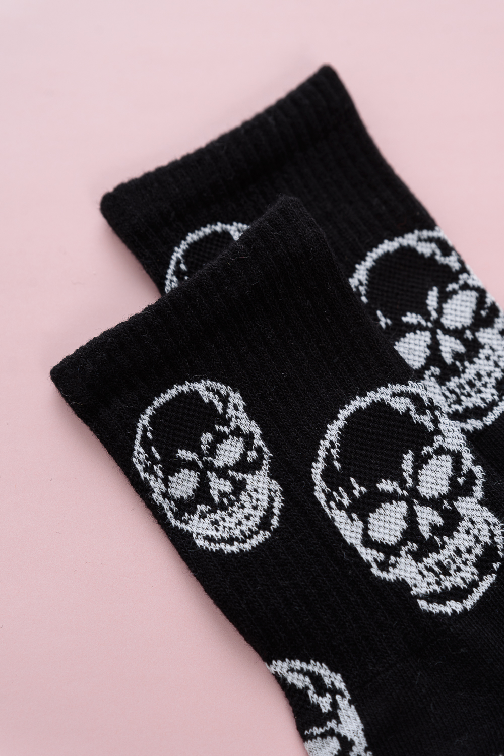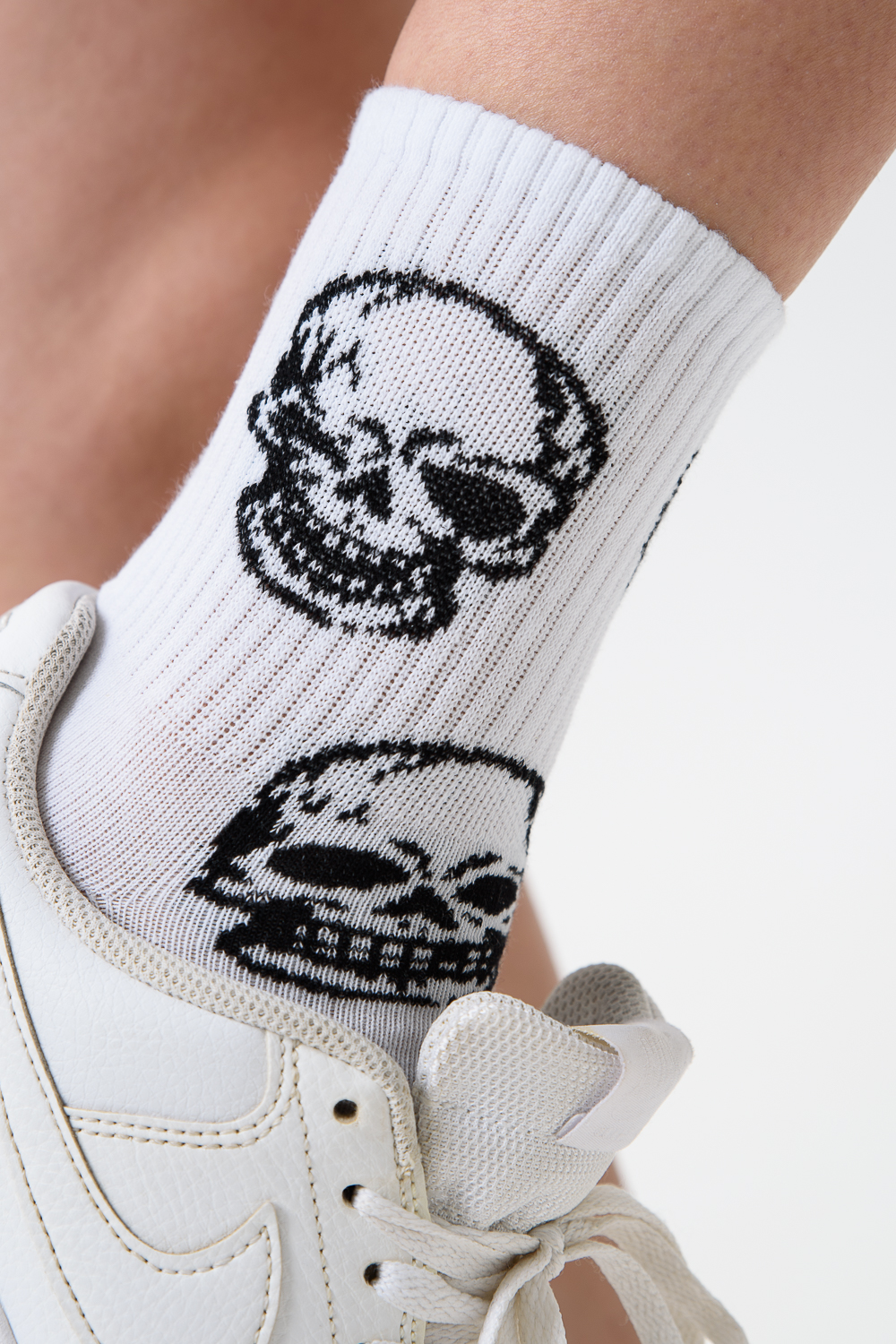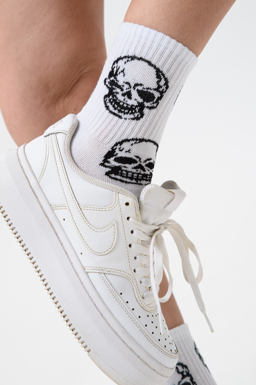 Женские носки с изображением черепов. Широкая резинка по всей верхней части носка.