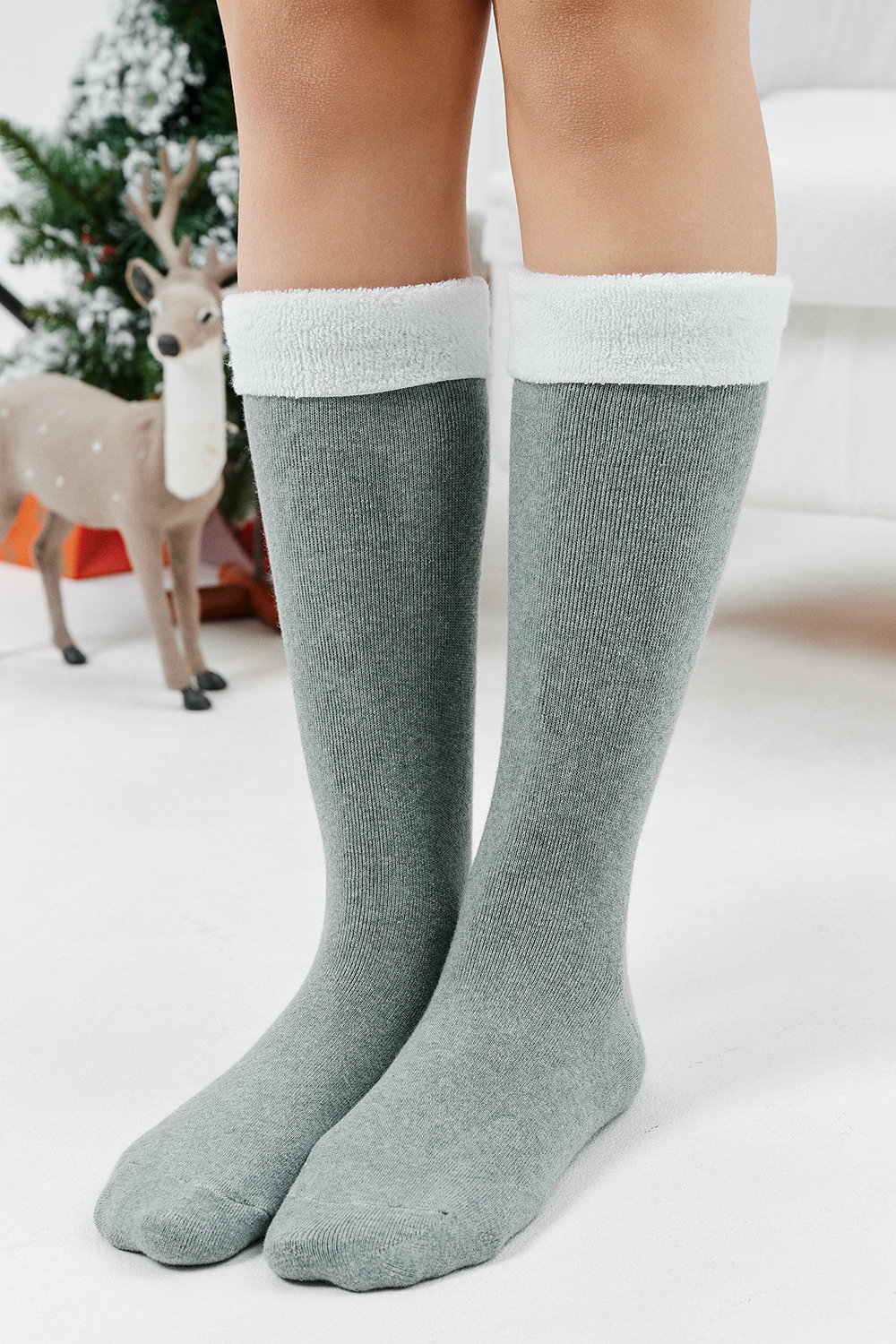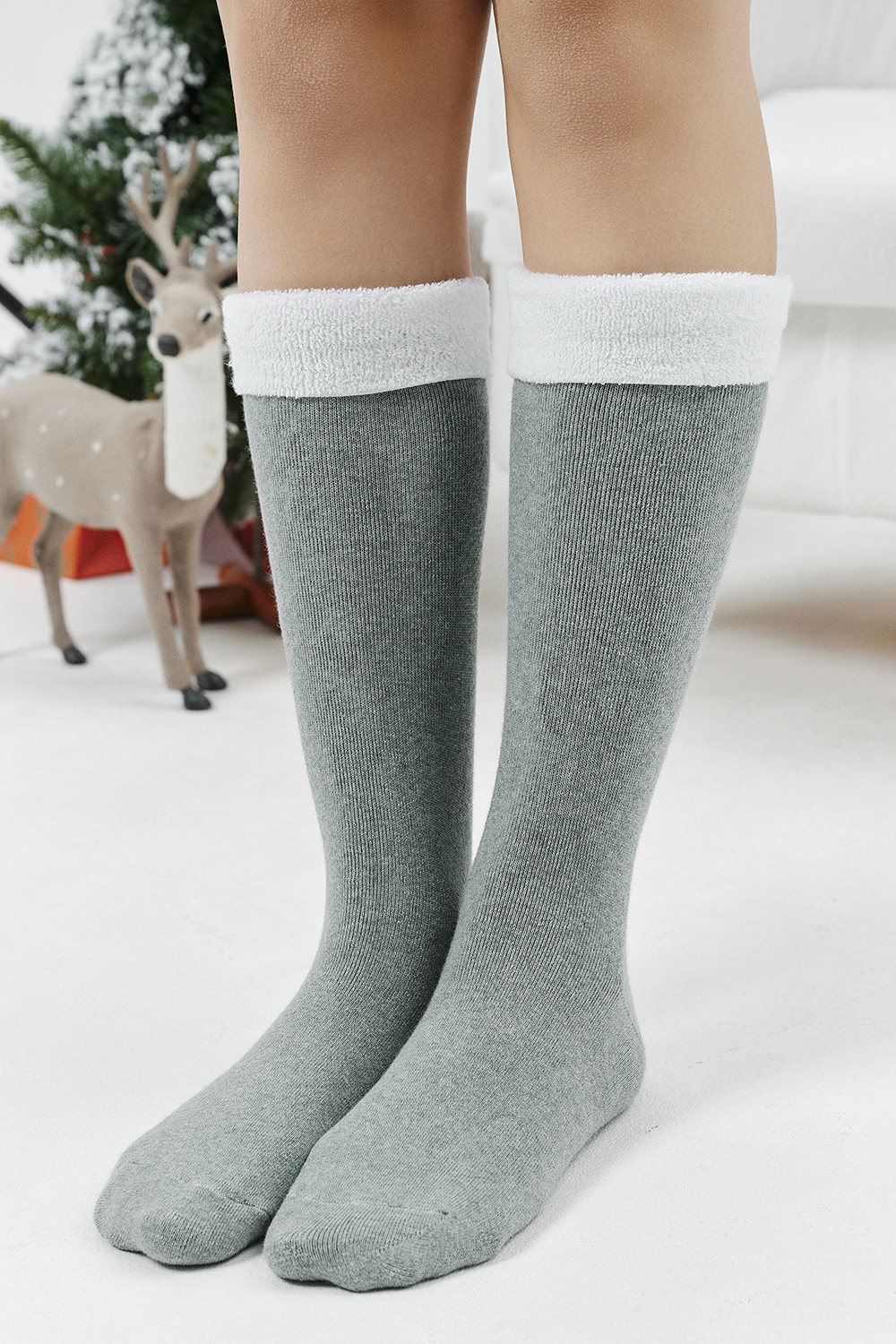 Уютные женские носочки-гольфы в новогодней расцветке. Полностью плюшевые внутри. Длина до середины икры. В упаковке 2 пары . Упаковка - прозрачный пакет.