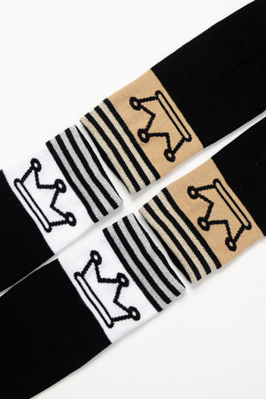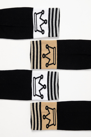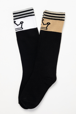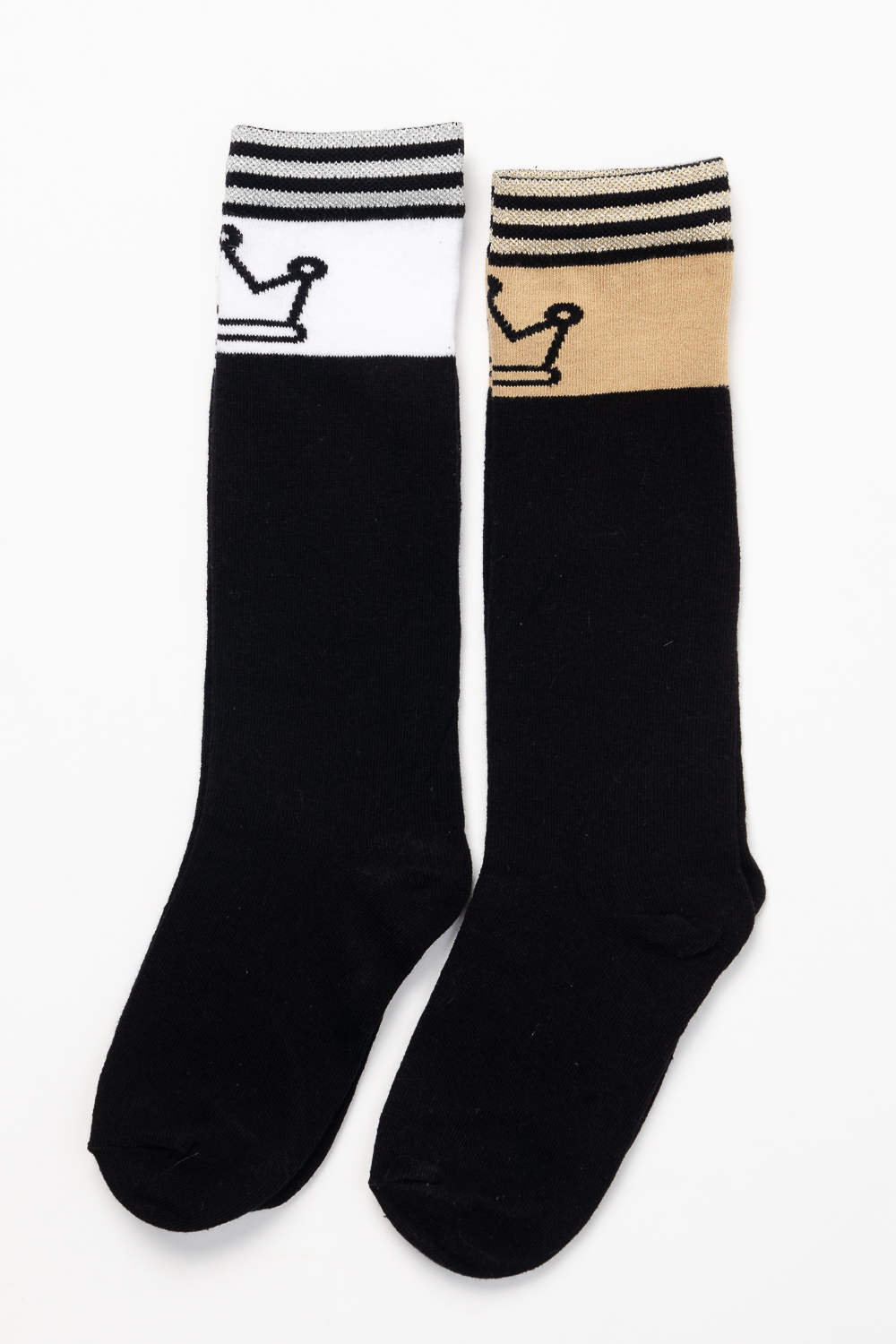 Стильные подростковые гольфы с лаконичным рисунком в виде короны и тонких полос с люрексом. Нарядные гольфы подойдут как для праздника, так и на каждый день.