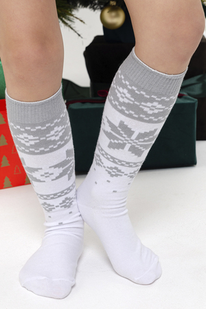 Очаровательные хлопковые гольфы отлично подойдут для встречи Нового года в семейном кругу или тематических фотосессий. Носки с новогодним рисунком это отличный сувенир друзьям, детям и коллегам. Благодаря удобной упаковке, можно подарить каждую пару отдельно. Новогодний принт на носках задает веселое настроение и притягивает взгляды окружающих. Высокое качество нитей сохраняет форму и цвет после стирки, а также препятствует образованию катышек. Такой новогодний подарок будет приятно получить и подарить!