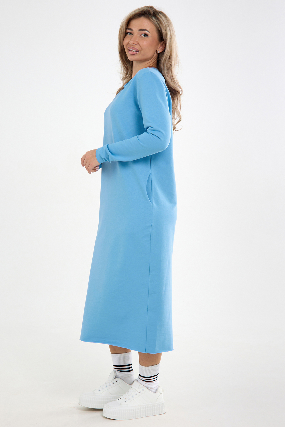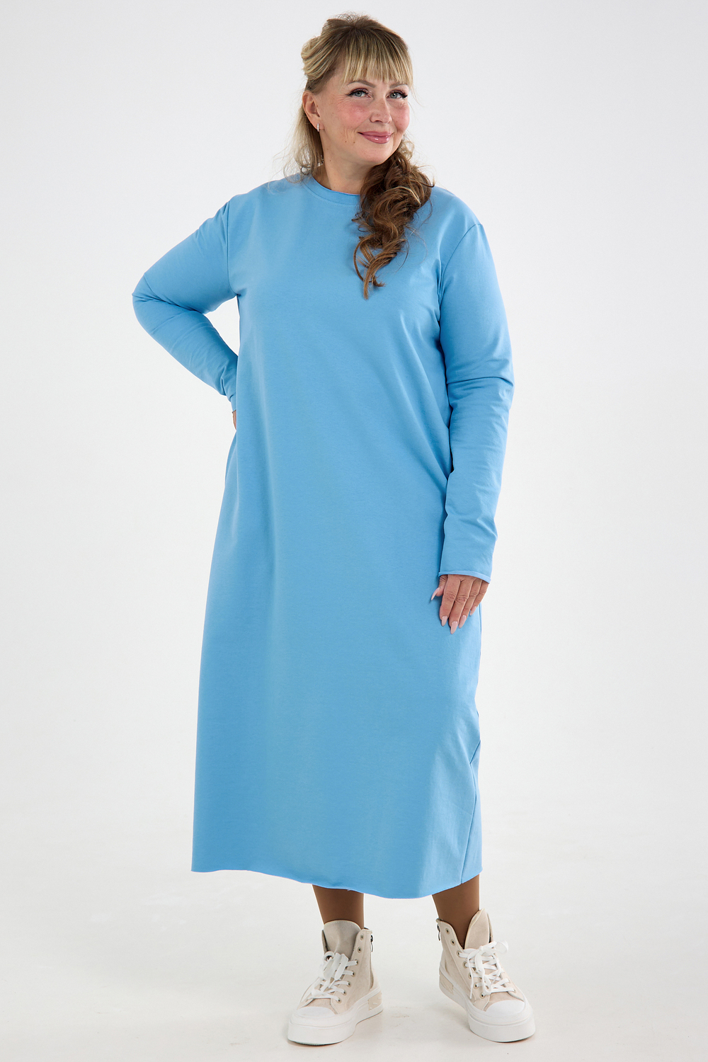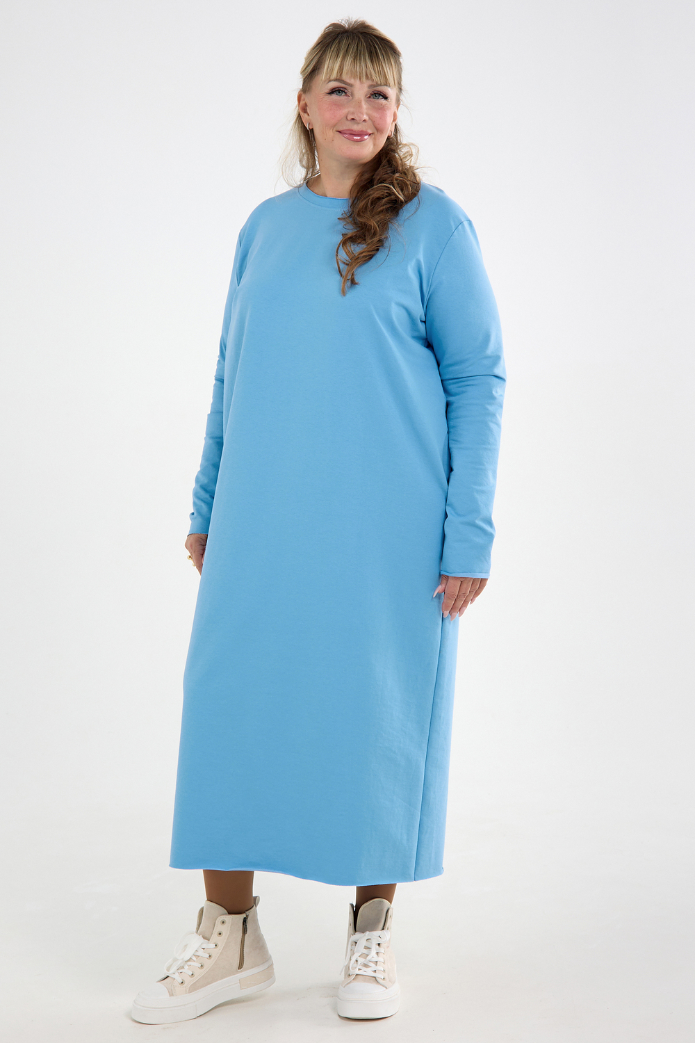 Платье повседневное трикотажное оверсайз. Женское платье, которое сочетает в себе комфорт, стиль и уникальность. Платье женское осень. Идеальный выбор для создания стильного и уютного образа.Это платье изготовлено из плотной, высококачественной и дышащей хлопковой ткани- футер 2-х нитка, что обеспечивает приятное ощущение на коже и комфорт в течение всего дня. Платье выполнено в прямом крое и имеет макси длину, что придает ему элегантность и утонченность. Трендовый вид товару придает округлый вырез горловины и длинные рукава. Необработанные края придают изделию особый стиль и эстетическую привлекательность. Необработанный край такой же прочный и стойкий к стирке и износу, как обработанный и отстроченный край. Не подвержен разрушению и сохраняет свою структуру и форму даже после многочисленных стирок. Платье позволяет подчеркнуть женственные формы и при этом не сковывает движения. Благодаря свободному крою, платье подходит для различных фигур и создает элегантный силуэт. Отлично держит форму при носке, не скатывается и обладает высокой износостойкостью. Материал не колется, очень приятный и мягкий к телу. Благодаря своему крою платье прекрасно скрывает любые несовершенства фигуры для полных дам, беременных и кормящих. Платье идеально подойдет для повседневной носки, в ней будет удобно в офисе или на учебе, комфортно на прогулке, в путешествии или на свидании. Идеально подойдет для фотосессий. Благодаря своему удобству и стилю, оно станет вашим незаменимым спутником в любое время года. Независимо от того, где вы носите это платье - на работе, на вечеринке или дома, оно будет подчеркивать вашу индивидуальность и придавать вам уверенности. Благодаря своей универсальности, оно прекрасно подходит как для высоких, так и для более низких женщин.