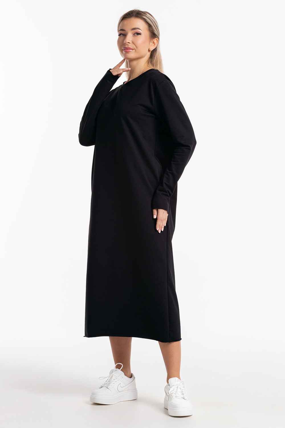 Платье повседневное трикотажное оверсайз. Женское платье, которое сочетает в себе комфорт, стиль и уникальность. Платье женское осень. Идеальный выбор для создания стильного и уютного образа.Это платье изготовлено из плотной, высококачественной и дышащей хлопковой ткани- футер 2-х нитка, что обеспечивает приятное ощущение на коже и комфорт в течение всего дня. Платье выполнено в прямом крое и имеет макси длину, что придает ему элегантность и утонченность. Трендовый вид товару придает округлый вырез горловины и длинные рукава. Необработанные края придают изделию особый стиль и эстетическую привлекательность. Необработанный край такой же прочный и стойкий к стирке и износу, как обработанный и отстроченный край. Не подвержен разрушению и сохраняет свою структуру и форму даже после многочисленных стирок. Платье позволяет подчеркнуть женственные формы и при этом не сковывает движения. Благодаря свободному крою, платье подходит для различных фигур и создает элегантный силуэт. Отлично держит форму при носке, не скатывается и обладает высокой износостойкостью. Материал не колется, очень приятный и мягкий к телу. Благодаря своему крою платье прекрасно скрывает любые несовершенства фигуры для полных дам, беременных и кормящих. Платье идеально подойдет для повседневной носки, в ней будет удобно в офисе или на учебе, комфортно на прогулке, в путешествии или на свидании. Идеально подойдет для фотосессий. Благодаря своему удобству и стилю, оно станет вашим незаменимым спутником в любое время года. Независимо от того, где вы носите это платье - на работе, на вечеринке или дома, оно будет подчеркивать вашу индивидуальность и придавать вам уверенности. Благодаря своей универсальности, оно прекрасно подходит как для высоких, так и для более низких женщин.