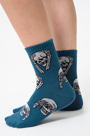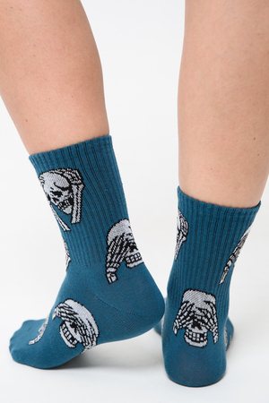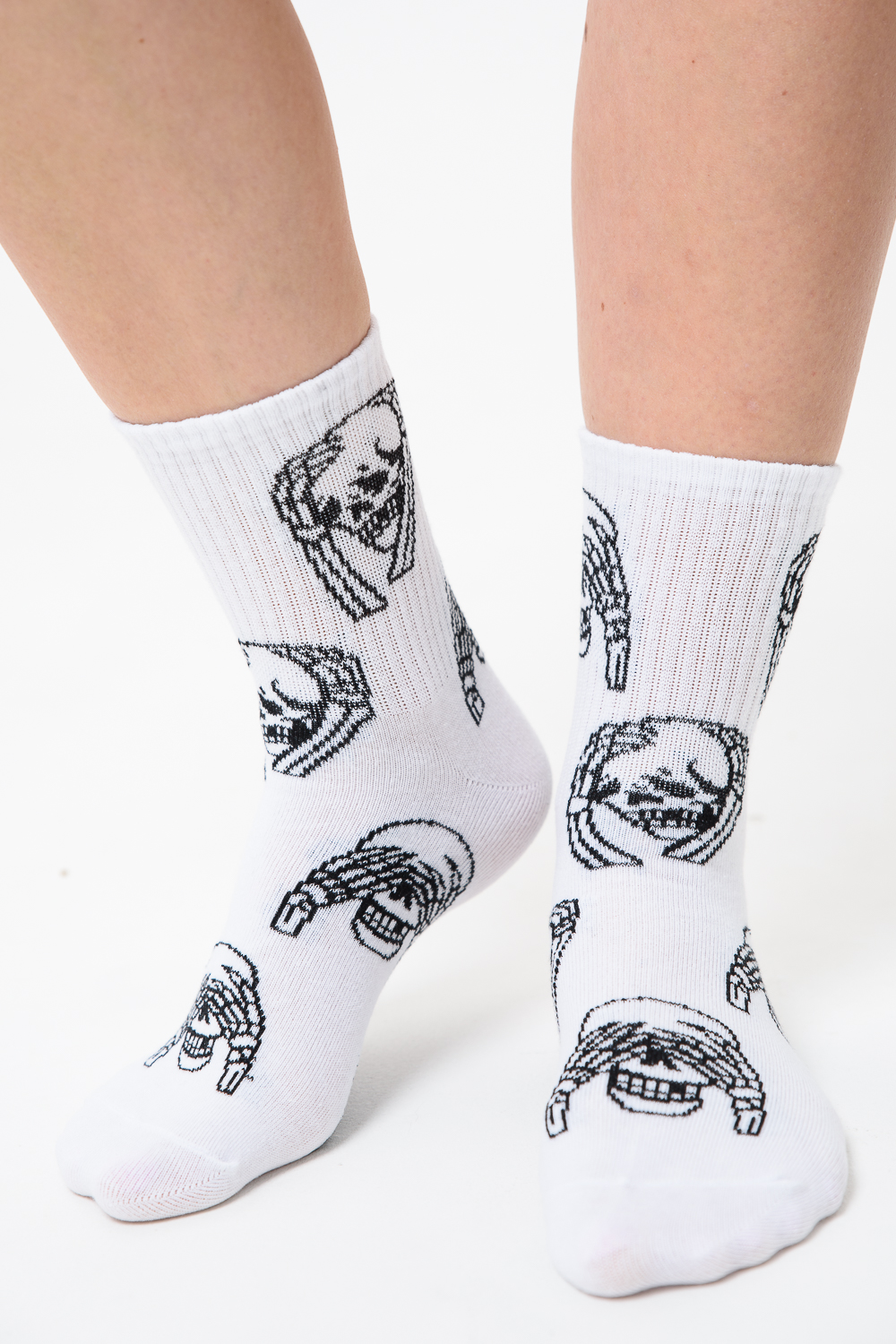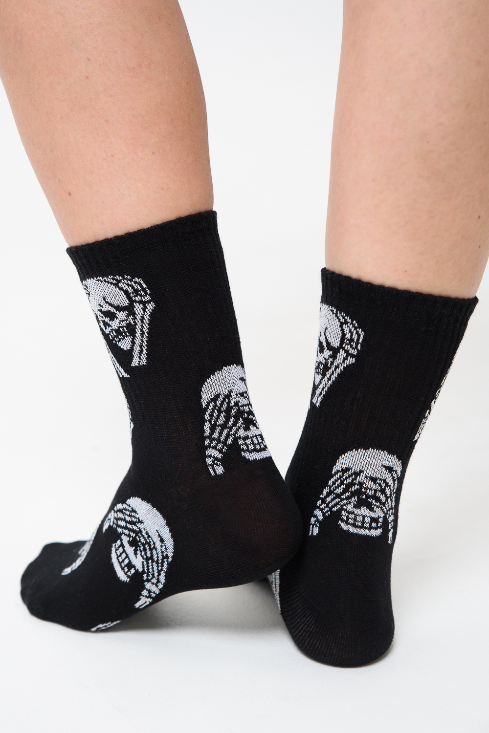 Женские носки с изображением черепов. Широкая резинка по всей верхней части носка. В комплекте 4 пары.