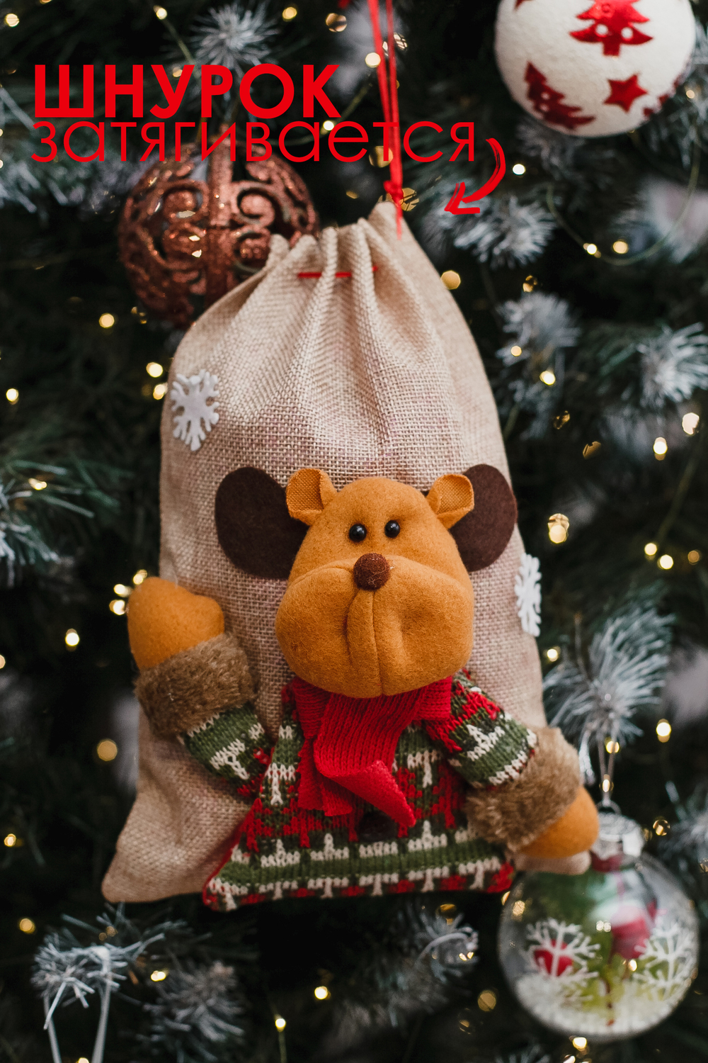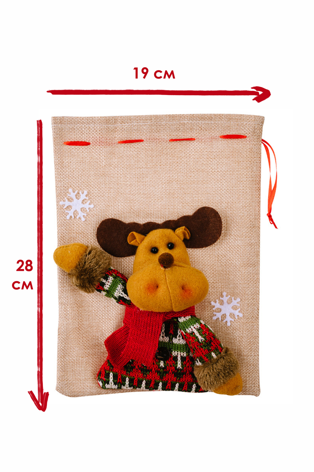Затягивается мешок двойным шнуром, что обеспечивает надёжную фиксацию подарков. Отличный выбор для семейных подарков, корпоративных наборов и праздничного декора. Мешок — не просто упаковка: он сам по себе становится частью подарка и может использоваться снова и снова.