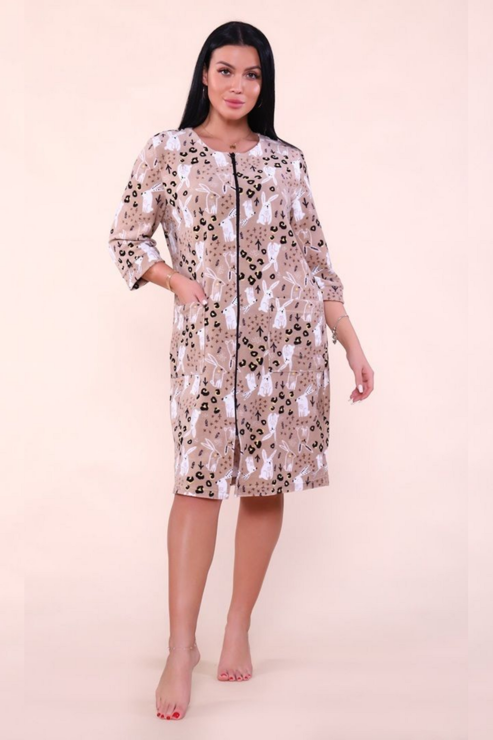 Халат махровый на молнии и двумя карманами.