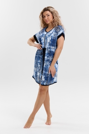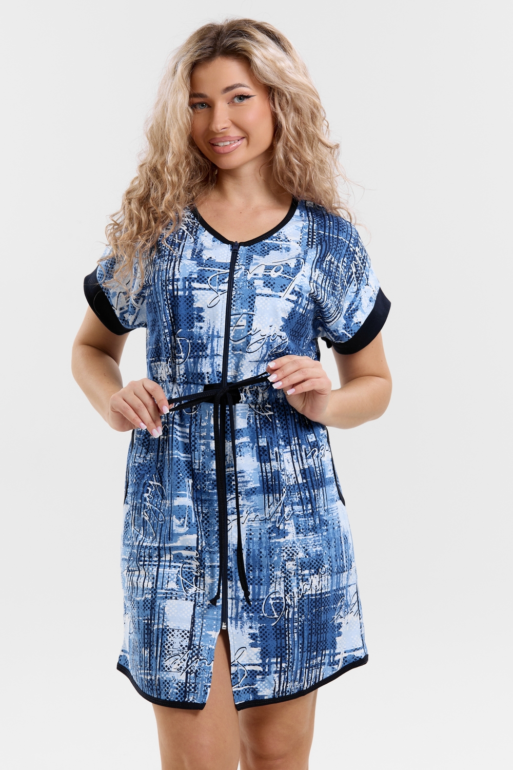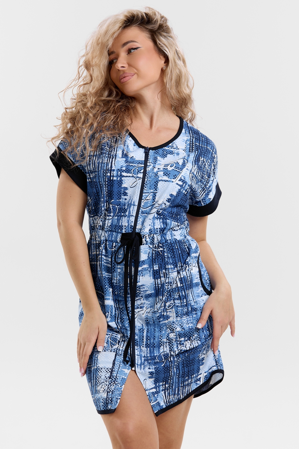 Женский трикотажный халат на молнии без сомнения станет самой желанной и любимой вещью в гардеробе любой дамы. Халатик укороченный, на кулисе со шнурком, с удобными карманами и молнией. Выглядит стильно и современно. Халатик такого плана подходит для фигур разного типа. Легкий и мягкий, качественный, дышащий, сшит из высококачественного трикотажа, подарит вам абсолютную непринужденность и легкость, простор в движении, идеально подойдет для беременных и кормящих и будет хорошим сопровождением в роддом и не вызовет раздражения, так как создан из натуральной ткани. Благодаря этому может стать прекрасным подарком для, мамы, подруги, бабушки, сестры или коллеги на любой праздник.  Отлично сядет на женщин больших размеров. Данная модель будет кстати для отдыха на даче и даже поездки к морю. Домашняя одежда российского производства, имеет комфортную посадку, не линяет, не дает усадку после стирки и долго сохраняет первоначальный внешний вид. Халатик подчеркнет Ваш стиль и добавит молодежных нот в ваш образ, а затягивающийся пояс на талии придаст женственности и изящества вашему луку. Стирайте изделия из хлопка на бережном режиме с температурой не выше 30С, чтобы сохранить цвет, форму и фактуру материала. Приобретая наши изделия, радуйте себя и своих близких.
