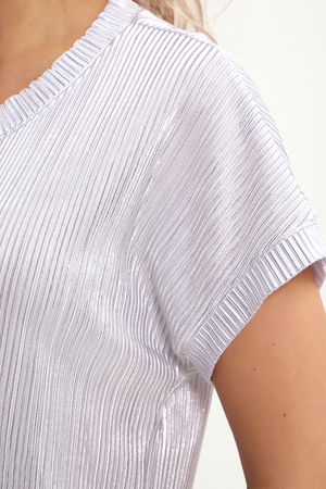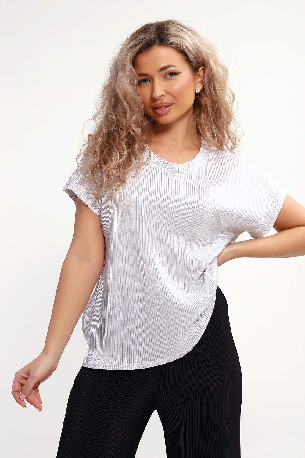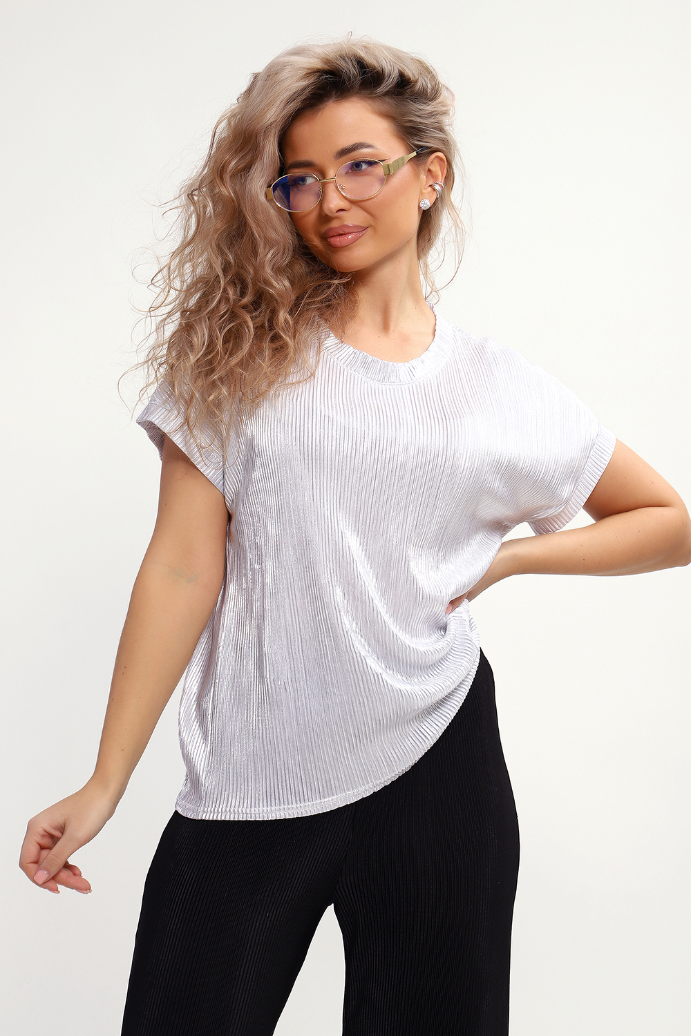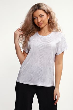 Стильная нарядная блузка, сочетающая в себе комфорт и элегантность. Благодаря свободному крою, блузка создает легкий силуэт и деликатно скрывает особенности фигуры. Добавляет изюминку изделию блестящая ткань с прочным напылением фойл, которое отлично держится на ткани после стирки. Ткань атлас гофре приятна на ощупь, хорошо тянется, не мнется, держит форму. Блузка смотрится и как офисная, и как вечерняя модель, а также это отличный вариант для летнего наряда. Округлая горловина, обработанная обтачкой, подчеркивает женственность образа, спущенный рукав не стесняет движений. Нарядная блузка позволит вам эффектно выглядеть не только на праздничных мероприятиях, но и в будни.