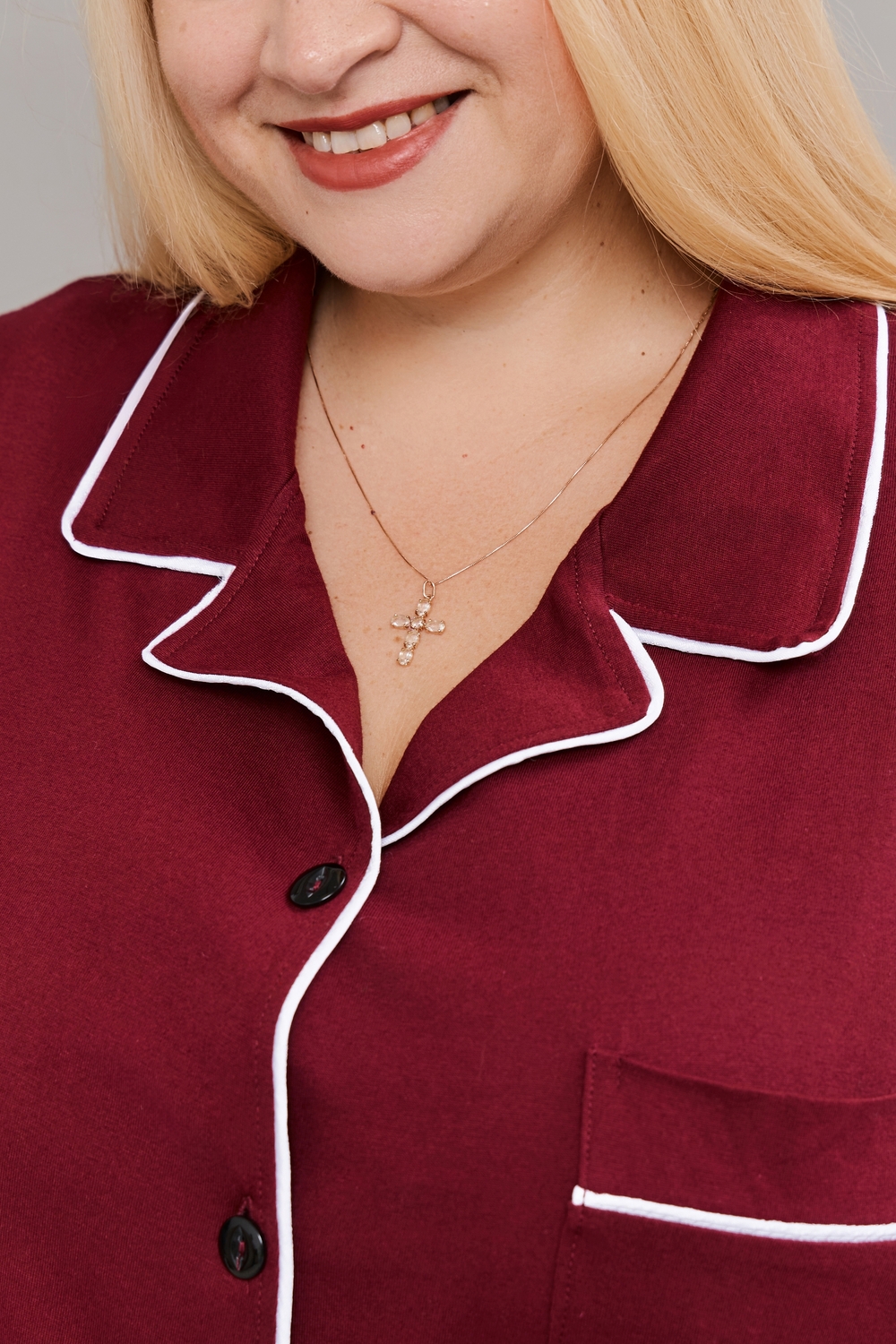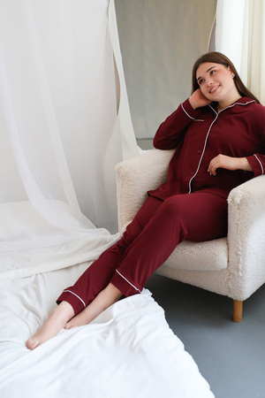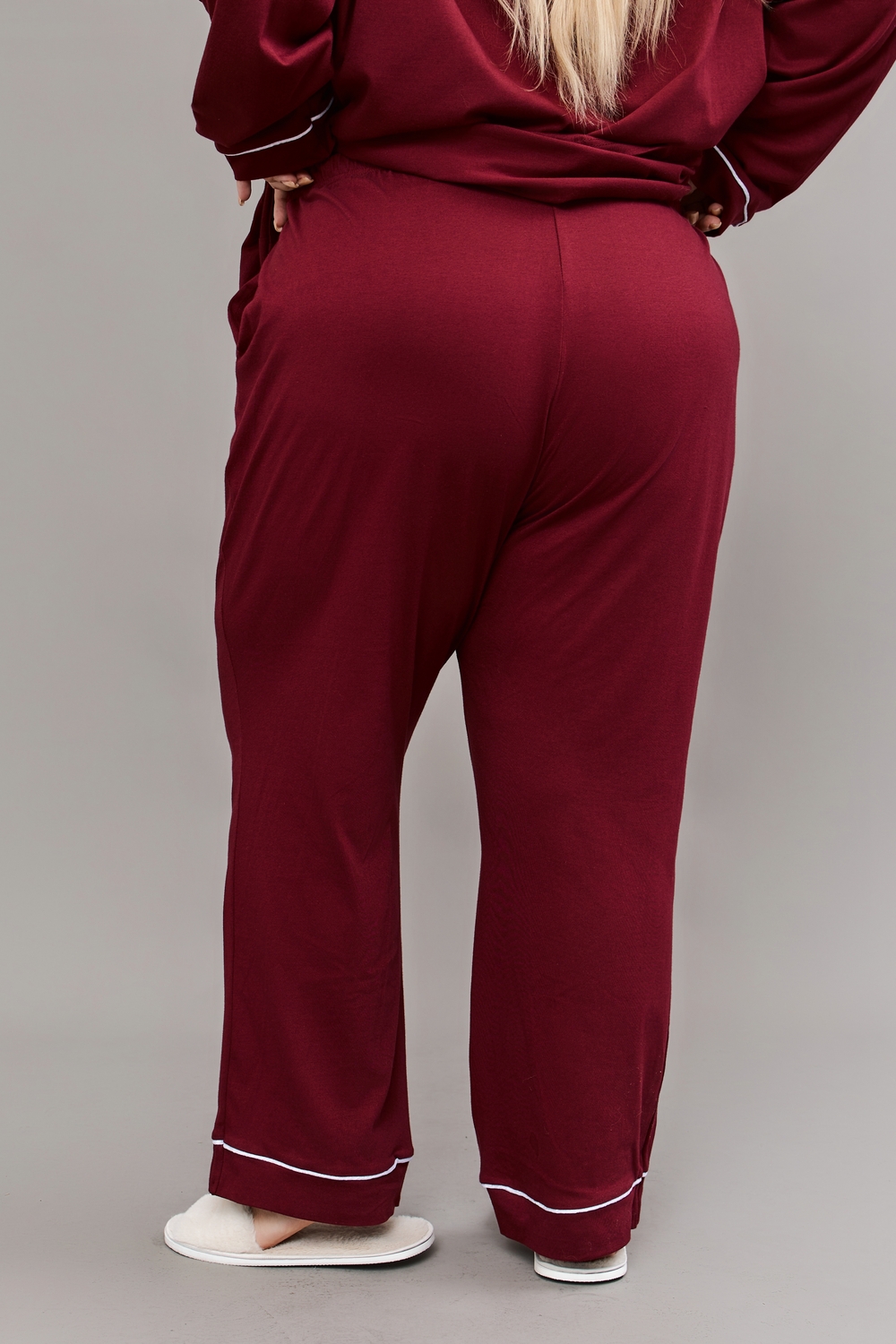 Женская пижама с брюками на пуговицах больших размеров Однотоннная