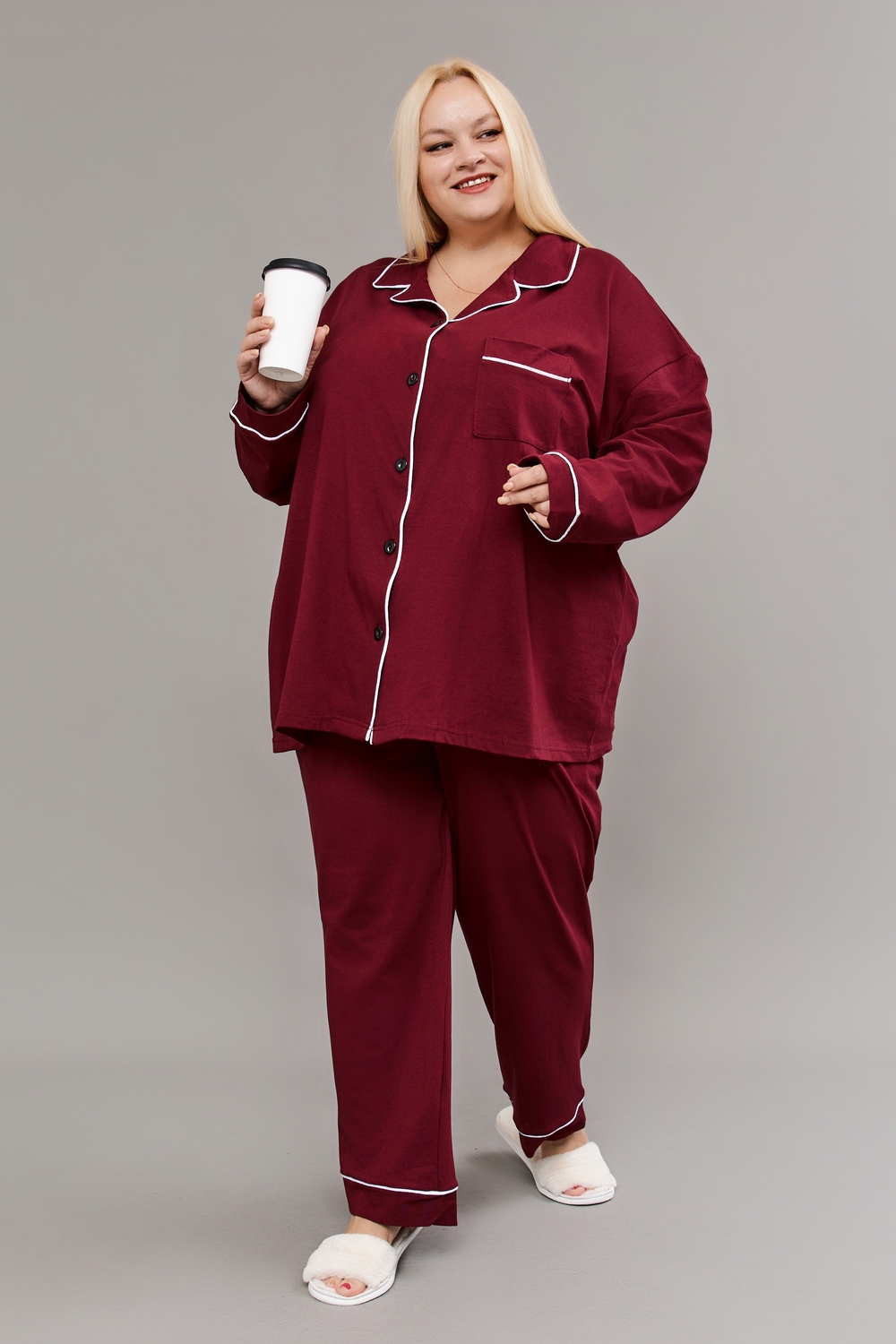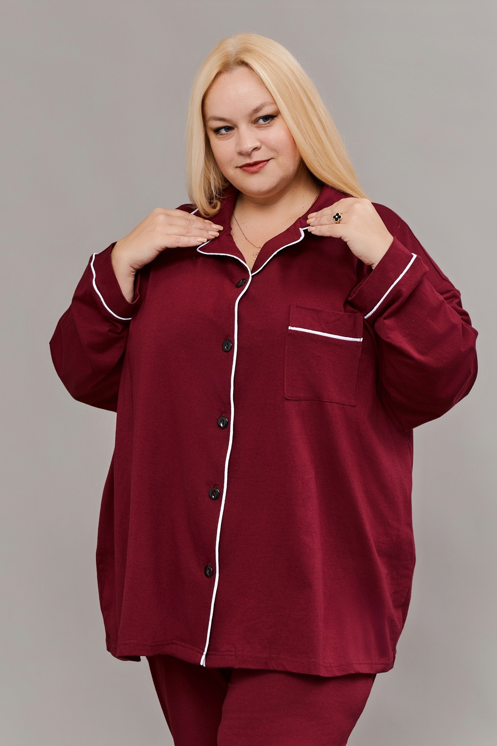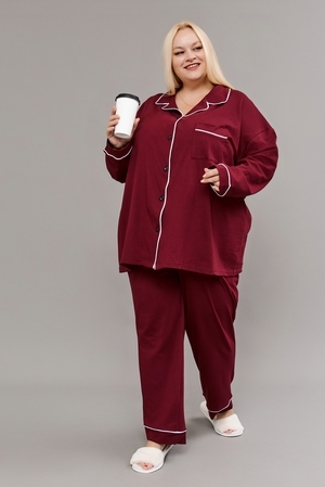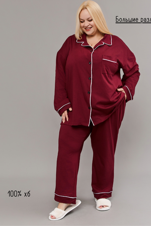 Пижама на пуговицах со штанами больших размеров Однотоннная