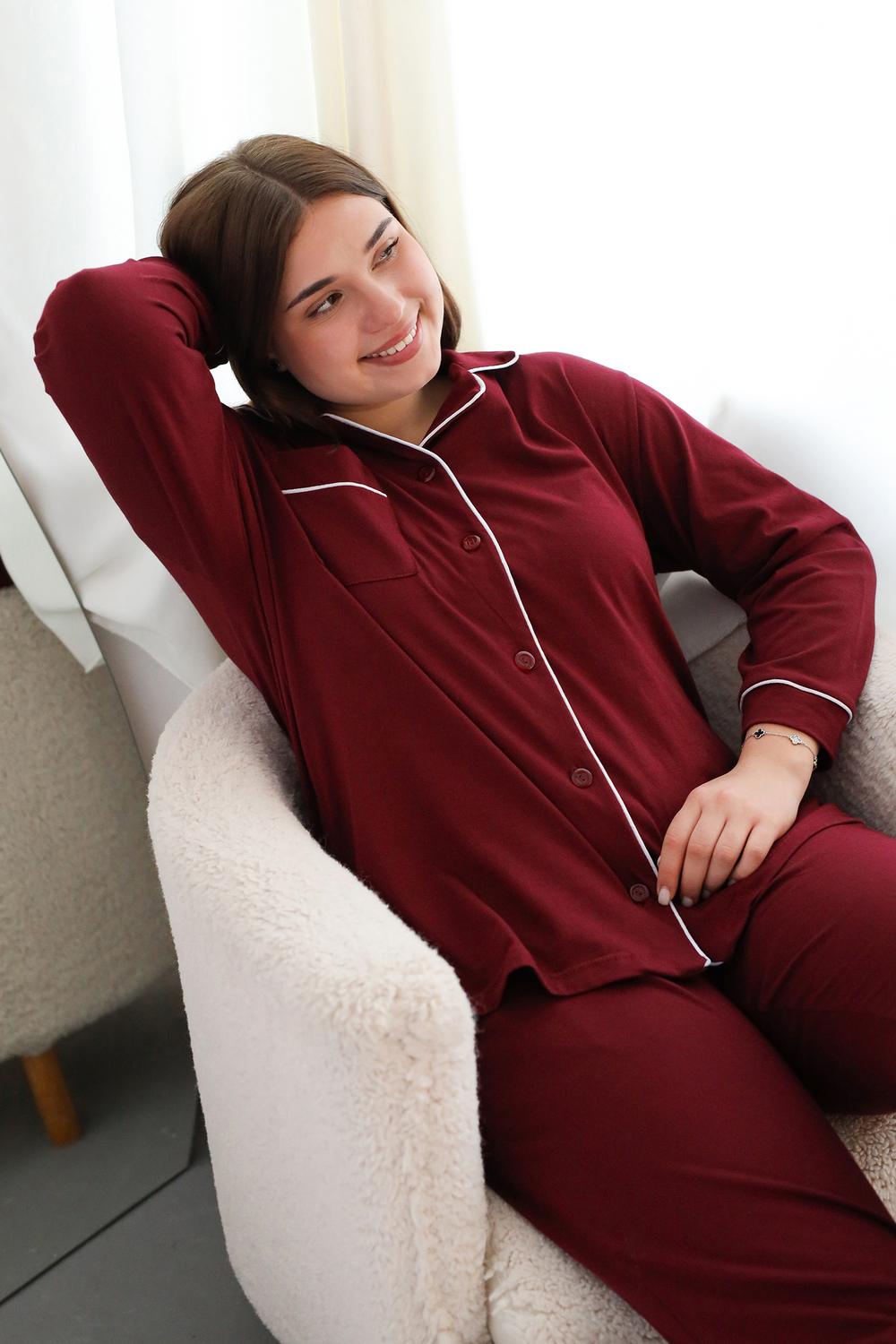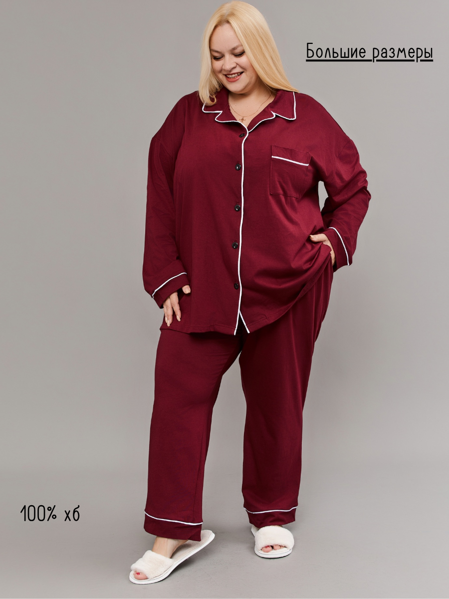 Представляем вам уютный и стильный набор пижамы больших размеров от ВРазмере, созданный для комфортного отдыха и сна. Этот теплый и мягкий комплект станет вашим любимым выбором для прохладных осенних вечеров. Пижама выполнена из 100% хлопка, что гарантирует приятные тактильные ощущения и заботу о вашей коже. Натуральные материалы обеспечат вам комфорт и уют в течение всего дня.  Утепленная модель идеально подойдет для прохладной погоды, а легкий трикотаж подарит ощущение невесомости.  В наборе вы найдете прямые однотонные штанишки с высокой посадкой и удобной резинкой, а также просторную рубашку с длинными рукавами. Классический дизайн без рисунка подчеркнет вашу элегантность, а свободный крой обеспечит максимальную свободу движений. Эта пижама станет прекрасным подарком на Рождество для любимых женщин, а также идеальным вариантом для дома и сна в холодное время года.