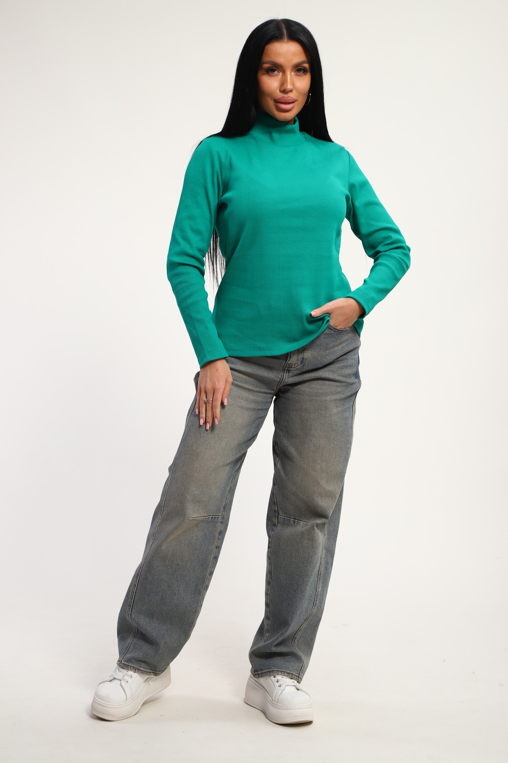 Водолазка полуприлегающего кроя прекрасно подойдёт для любого времени года в сочетании с любимыми джинсами, брюками или юбкой. Стильная водолазка - это классика в моде, она подходит как для праздника, так и на каждый день. Ее можно надеть на прогулку, или отправиться в ней на день рождения . Она подходит для походов в театр или деловой встречи. Модель имеет большой размерный ряд: с 46 р по 56 р Повседневная водолазка впишется в любой гардероб, подойдет под любые стили в одежде и подарит комфорт.
