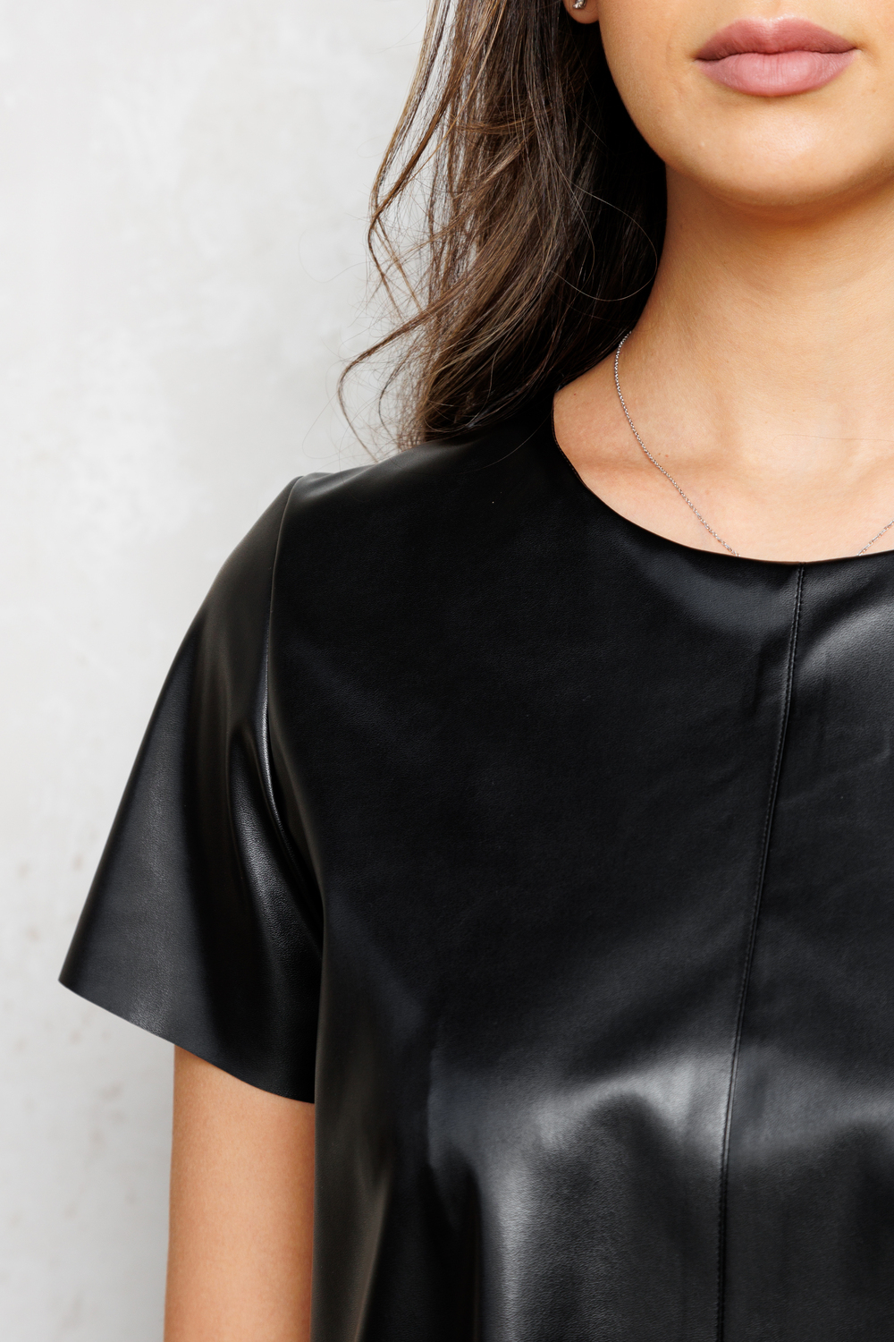 Представляем Вам красивое и универсальное платье из эко кожи премиум качества от бренда Raposa! Платье из эко кожи станет настоящим хитом Вашего гардероба, ведь она идеально подходит как для офиса, так и для праздничных мероприятий. Прямой силуэт и длина мини подчеркнут Вашу фигуру, а гладкая эко кожа придает образу элегантность и шик с ноткой сексуальности. Благодаря отсутствию подкладки, стильное платье трапеция, а силуэт удобно в носке, а короткий рукав делает его идеальным выбором для теплой погоды. Представьте себя на корпоративе вечеринке в этом потрясающем свободном трендовом платье на новый год 2026! Лаконичный дизайн и однотонный цвет платье вечернее сделают Вас звездой. В деловом дресс коде платье на осень станет отличной альтернативой классическим костюмам и уместно как школьное на 1 сентября. Кожаное платье - идеальный выбор для высоких и невысоких, для полных женщин плюс сайз больших размеров до 58 и 60 или для беременных.