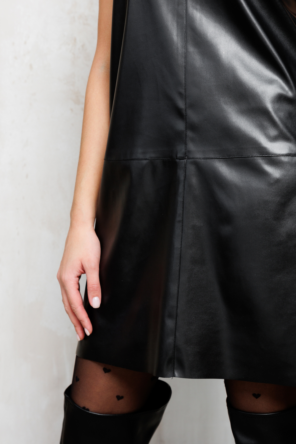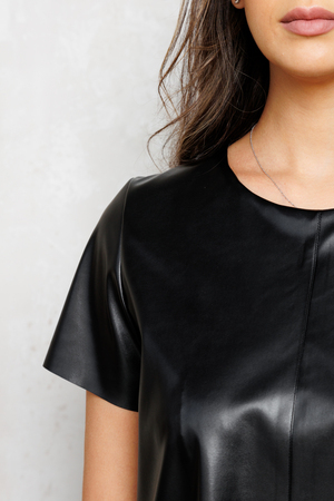 Необработанный срез рукавов и подола платье кэжуал – дизайнерское решение бренда. Экокожа не сыпется, не разбегается стрелками, поэтому Вы всегда можете подогнать платье по длине, мягкий срез материала не будет царапать кожу, колготки будут целы. Коктейльное платье свободного кроя легко комбинируется с различными аксессуарами и обувью. Не упустите возможность приобрести это осеннее кожаное офисное платье! Выбирайте маленькое черное платье или мокко олд мани на фотосессию для девушки или девочки подростка.