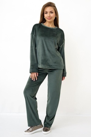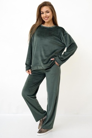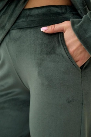 Красивый и уютный костюм из мягкого велюра состоит из кофты и брюк. Брюки прямого кроя, пояс на резинке, с боковыми карманами. Нежный велюровый комплект отлично смотрится на разных типах женской фигуры, создает комфорт своей обладатильнице. Костюм имеет свободный крой и прекрасно подходит для дома, отдыха на природе, в поездке, и просто повседневного образа. Шикарный велюровый комплект станет отличным подарком на Новый год маме, подруге или себе!