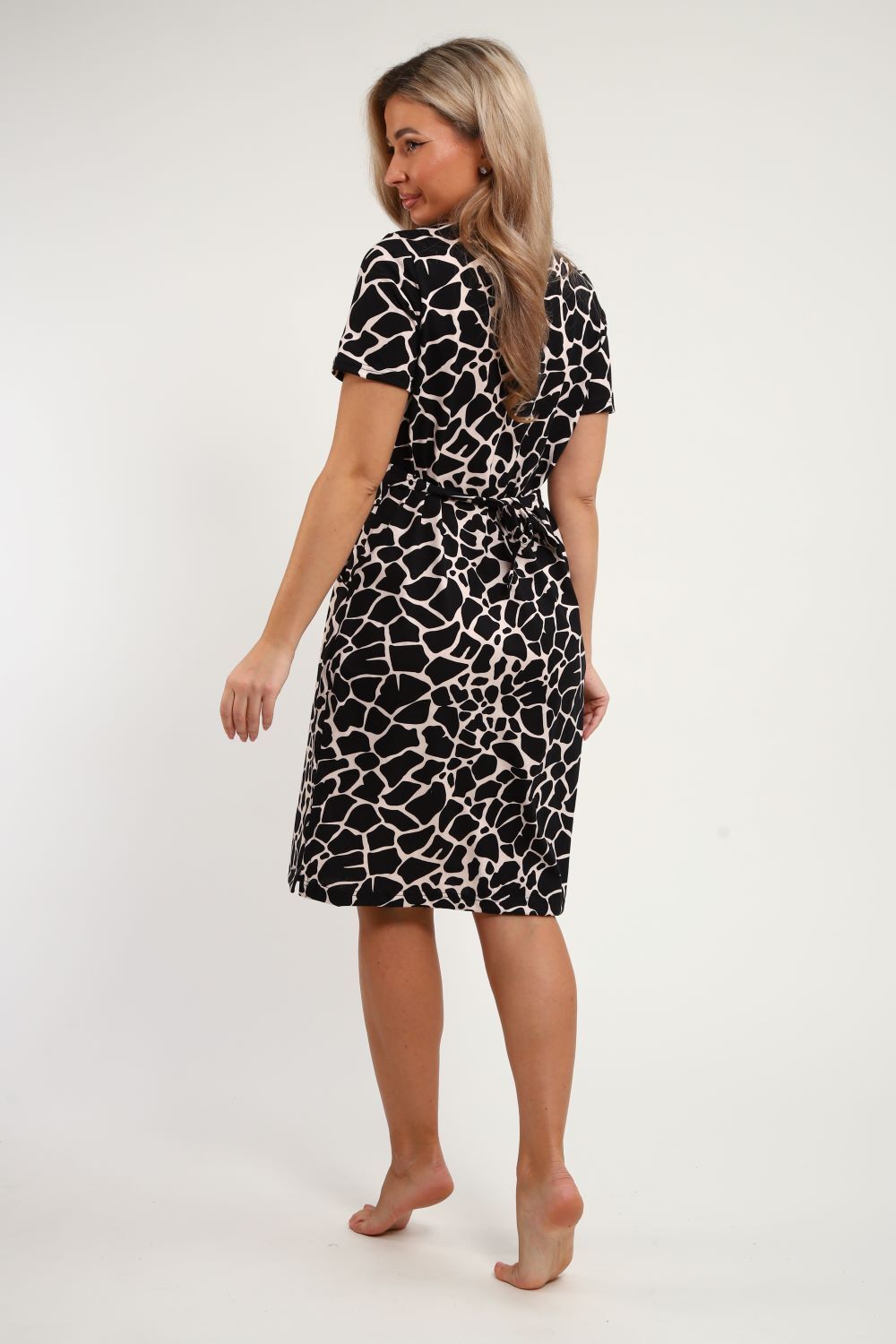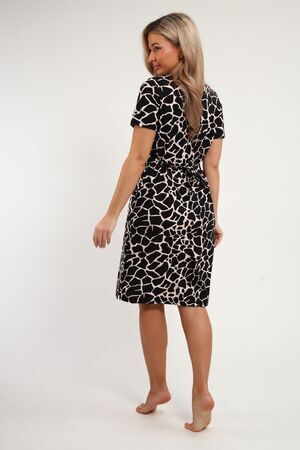 Изделие выполнено из трикотажного полотна с натуральным составом — такой материал приятен к телу, дышит и поддерживает оптимальный микроклимат. Фасон изделия универсален и уместен в любой обстановке: его можно надеть после душа, использовать как лёгкую одежду для дома или взять с собой в поездку. За счёт продуманного силуэта изделие хорошо садится на разные типы фигуры и подчёркивает естественную линию тела, при этом оставаясь удобным и свободным.