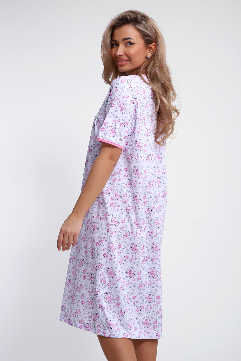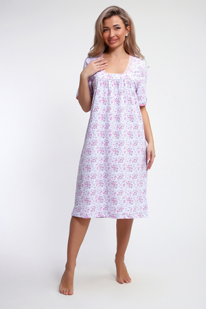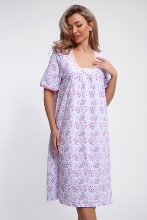 Сорочка хлопковая кулирка, белоземелька, декорирована эластичным кружевом по горловине.