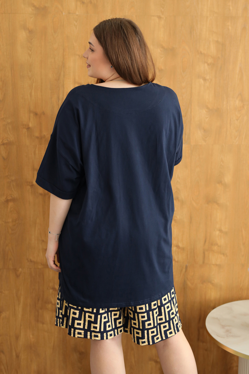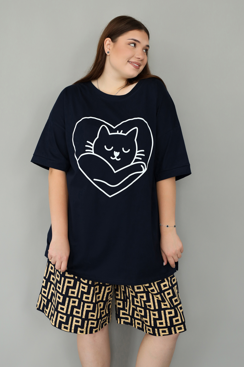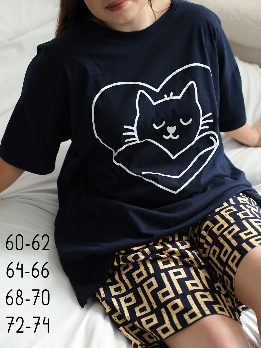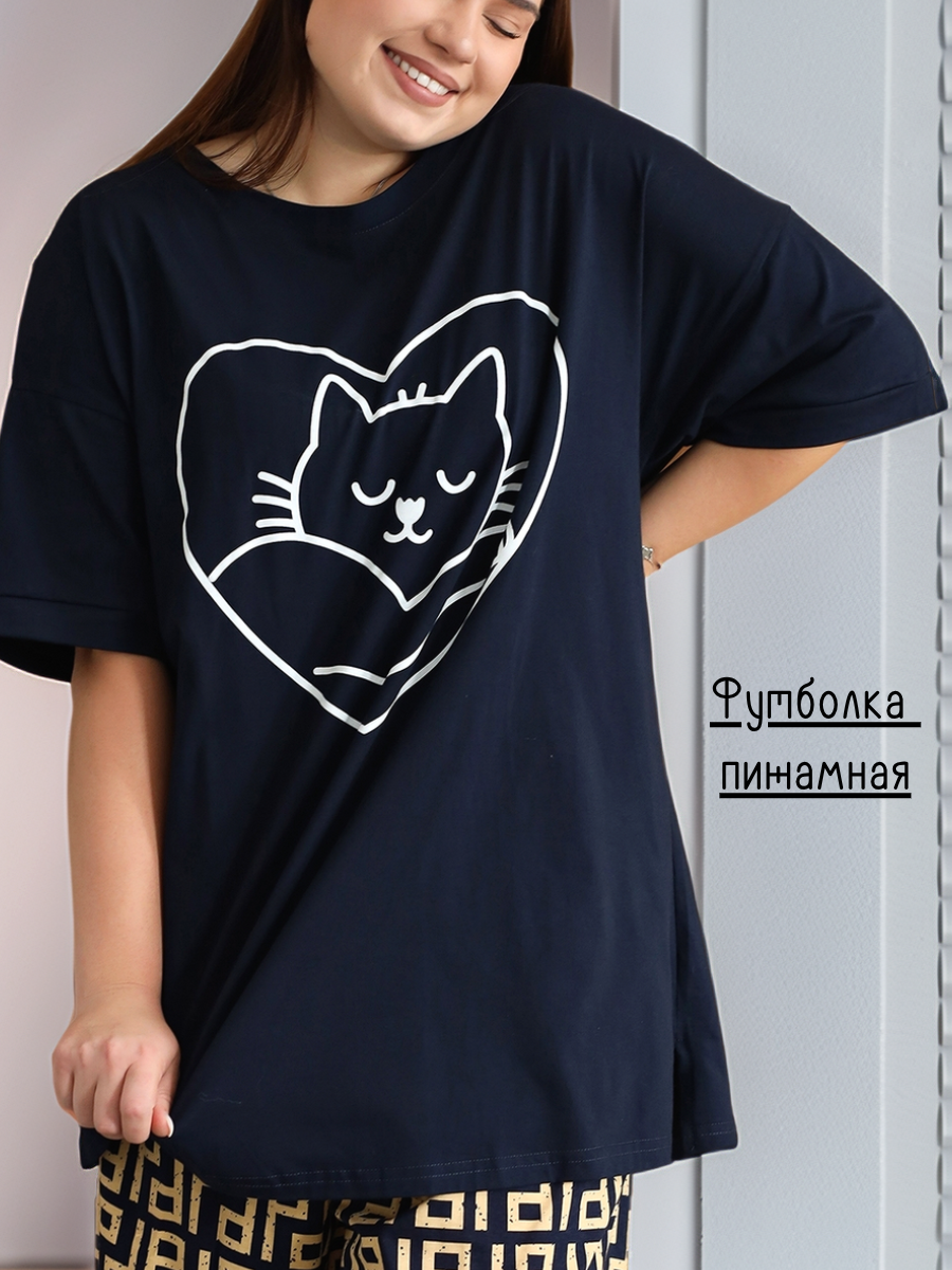 Футболка пижамная женская ВРазмере из коллекции "Новогодняя для хорошего отдыха" - это идеальный выбор для комфортного сна и отдыха дома. Эта мягкая и нежная футболка, сшитая из 100% хлопка , подарит вам ощущение легкости и приятной прохлады. Однотонная модель темно-синего цвета с милым принтом в виде кошечки создает уютную и женственную атмосферу. Благодаря свободному, оверсайз крою, футболка идеально подходит для женщин plus size, обеспечивая максимальный комфорт и свободу движений. Короткие рукава и отсутствие карманов делают ее удобной для сна, а легкая ткань кулирка не будет сковывать ваши движения. Эта пижамная футболка станет отличным выбором для тех, кто ценит комфорт и стиль. Она прекрасно подойдет как для сна, так и для домашнего отдыха, создавая атмосферу уюта и расслабленности.