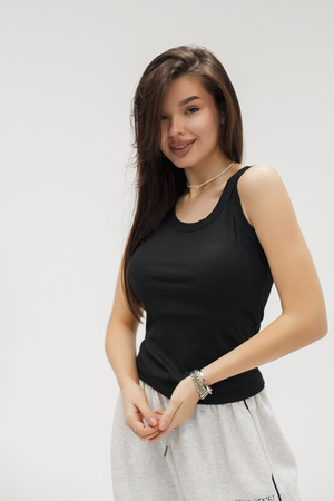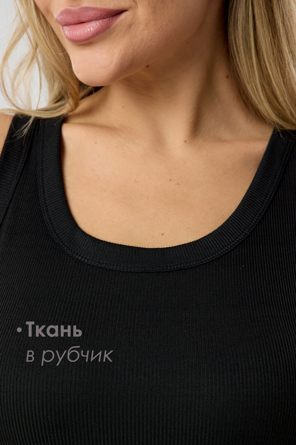 Уход за майкой простой: бережная стирка при низкой температуре, без отбеливателей, сушка в тени и осторожное гладление при средней температуре продлят срок службы изделия и сохранят насыщенный чёрный цвет. Закажите сейчас — универсальный и практичный топ, который станет базой в вашем гардеробе.