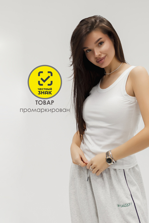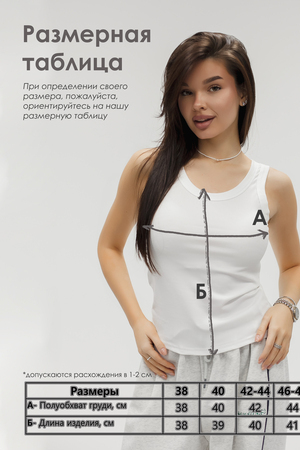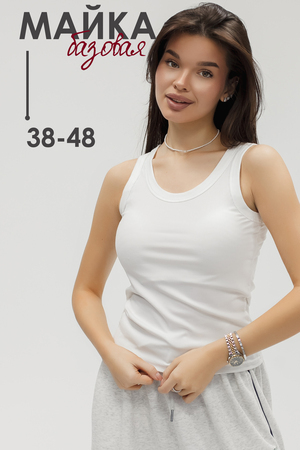 Женская майка в рубчик — белый облегающий топ, составом 95% полиэстер и 5% спандекс для идеальной посадки. Ткань приятна к телу, не вызывает раздражения и сохраняет форму даже после частых стирок, а фактура в рубчик придаёт изделию аккуратный, стильный вид.