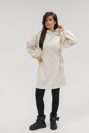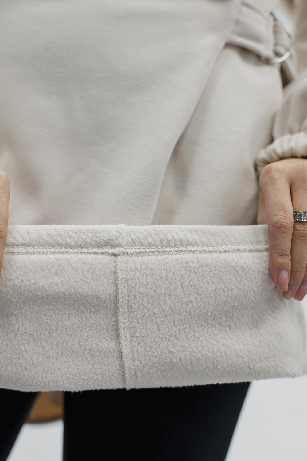 Туника проста в уходе: рекомендуется стирка на деликатном режиме при 30°C, без отбеливателей. Ткань быстро сохнет и долго сохраняет структуру ворса при бережной сушке в расправленном виде. Это практичная и стильная вещь для повседневного гардероба, которая сочетает в себе тепло флиса, удобство капюшона и гибкую регулировку талии, оставаясь комфортной и элегантной на всех этапах жизни, включая период беременности.