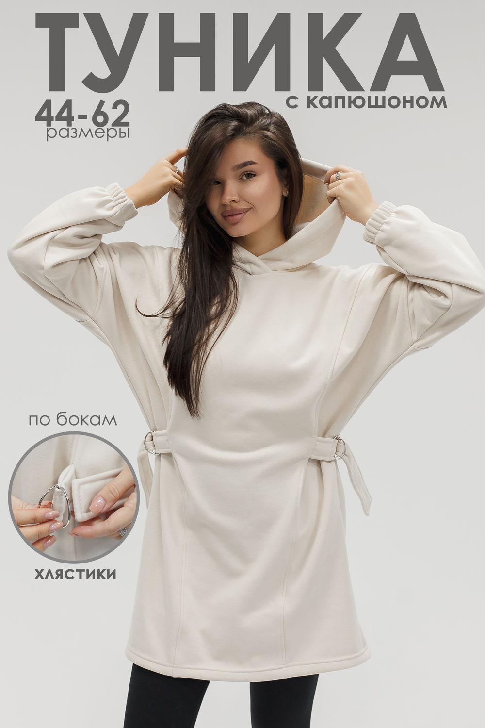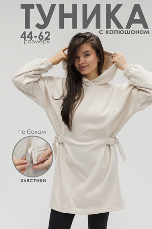 По бокам расположены функциональные хлястики, которые позволяют аккуратно подчеркнуть талию или, при желании, ослабить и завязать как удобно, адаптируя посадку под растущий живот, поэтому модель отлично подходит для беременных. Свободный, удлинённый силуэт делает тунику универсальной. Носите её с джинсами, леггинсами или теплами штанами, а капюшон добавляет практичности и дополнительного уюта в прохладную погоду. Кофта представлена в большом размерном ряде с 44 по 62, продумана под любые и нестандартные фигуры — посадка мягкая, линия плеч естественная, а хлястики дают возможность подчеркнуть форму без дискомфорта.