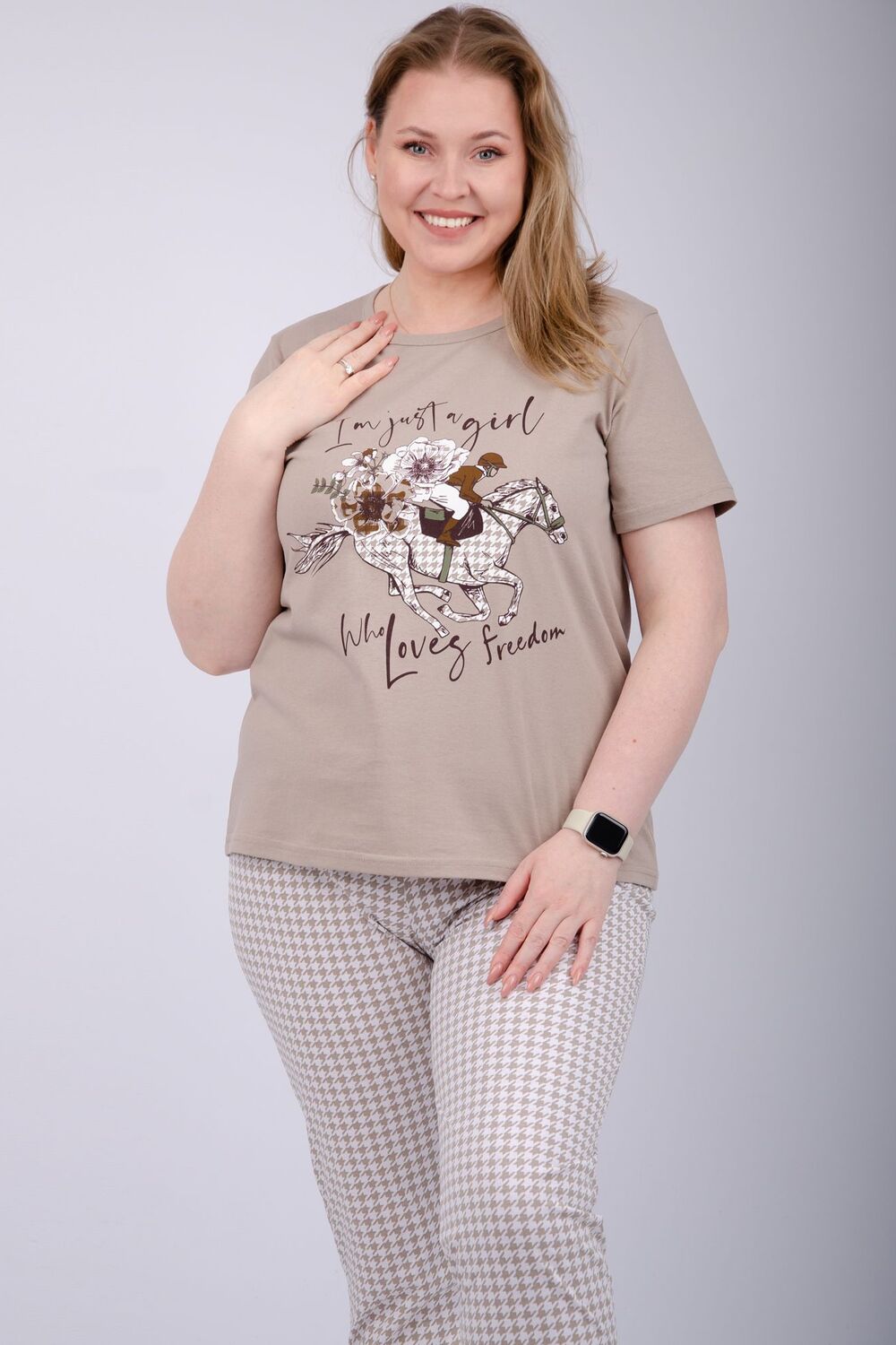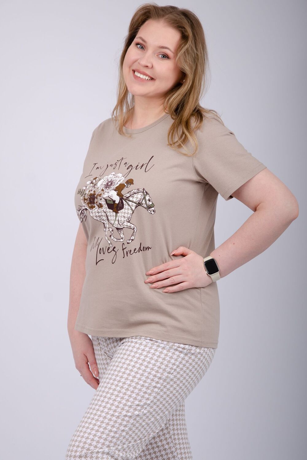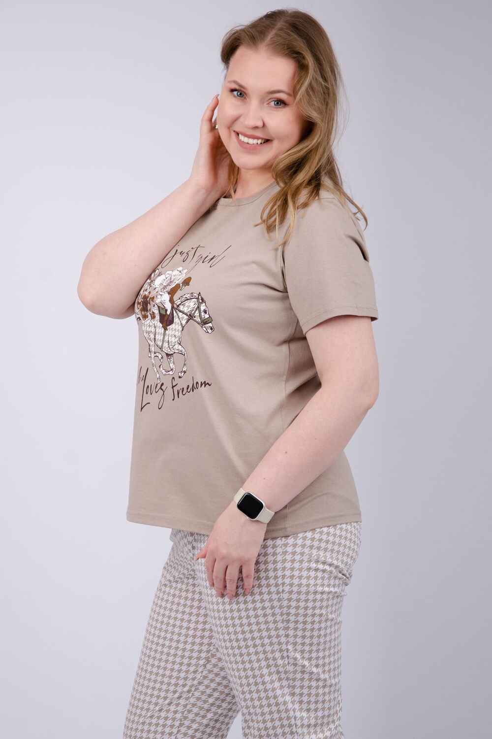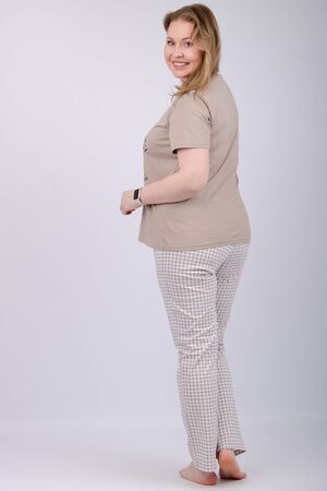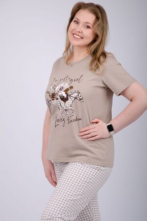 Наша пижама выполнена из мягкого и приятного на ощупь трикотажа, который обеспечивает максимальный комфорт во время сна и отдыха. Материал прекрасно дышит, не вызывает аллергии и раздражения кожи. Благодаря своей структуре он сохраняет тепло в холодное время года, и создает ощущение легкости и свежести в летнее время. Пижама представлена в нескольких размерах, включая большие, чтобы каждая женщина могла найти подходящий вариант, который подходит именно вам.