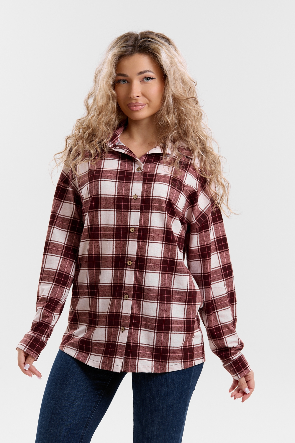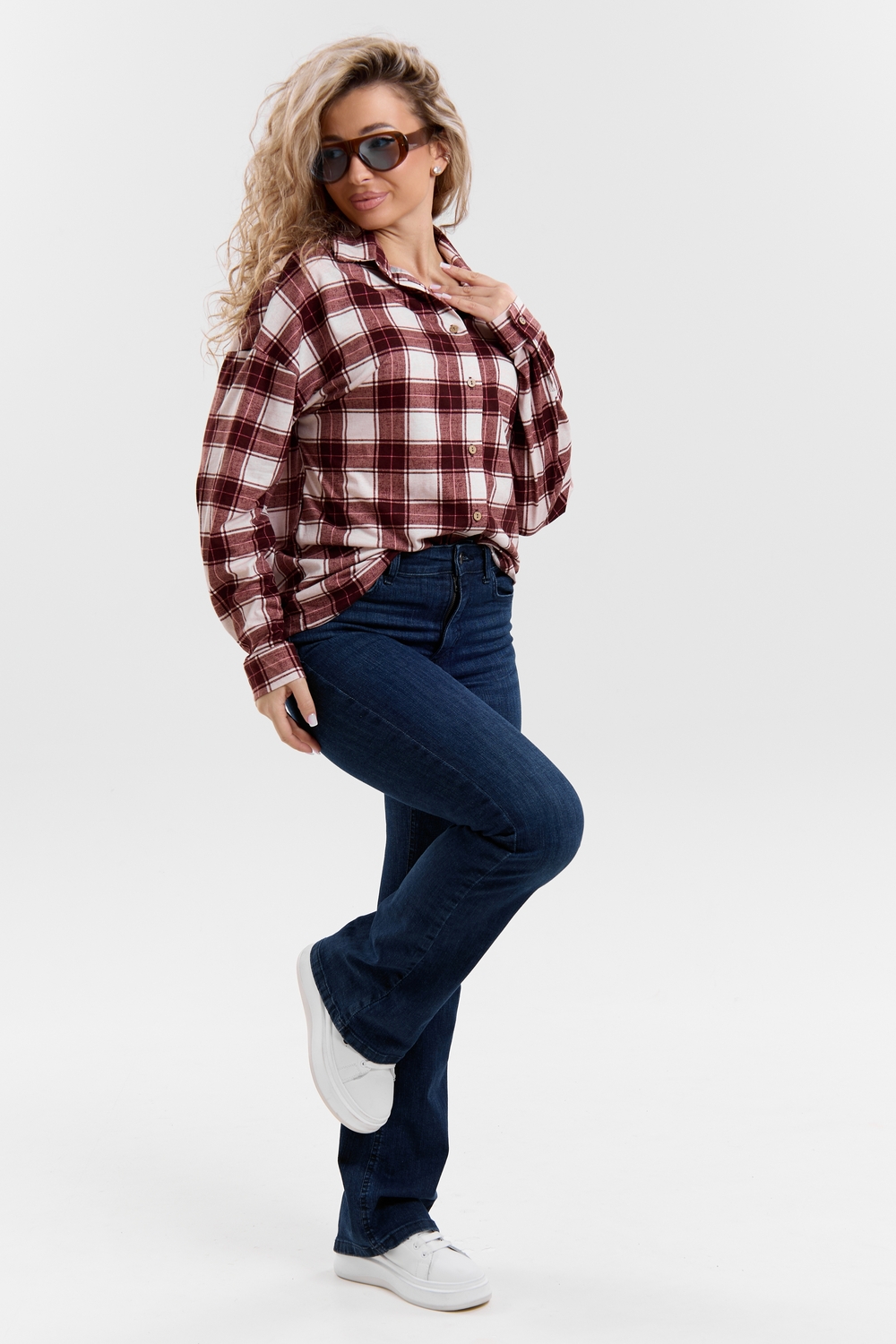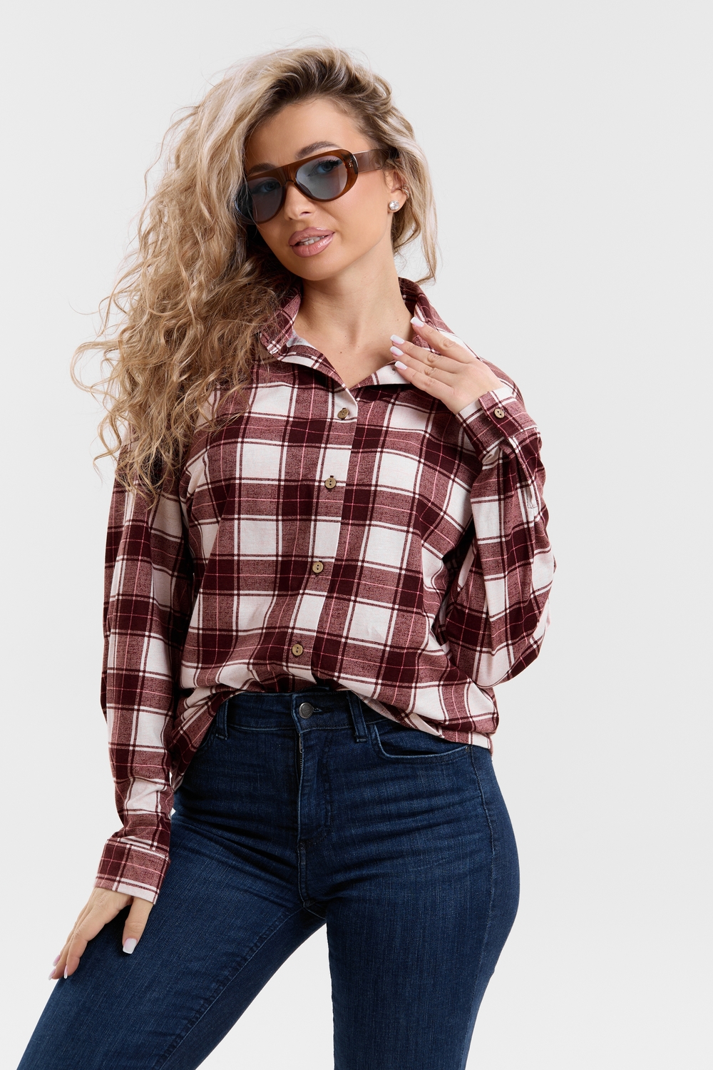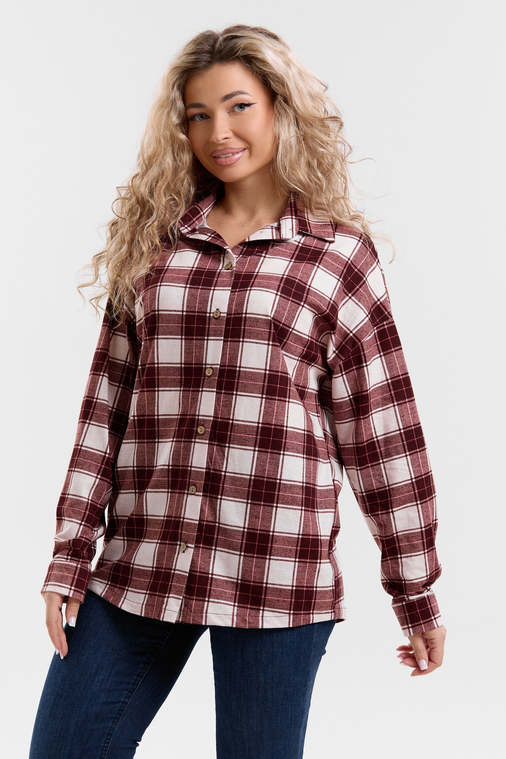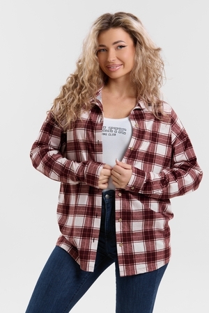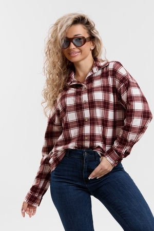 Модная рубашка в стиле oversize выполнена из качественного хлопчатобужажного материала в клетку. Рубашка такого плана делает любой образ уникальным и выразительным. Клетка будет самой актуальной в этом сезоне. Но будьте осторожны — в комплект к моделям с клеткой лучше выбирать однотонные вещи, чтобы не перегружать лук. Это одна из самых модных и популярных моделей сезона. Рубашка имеет слегка удлинённую спинку, спущенную линию плечевого шва, классический рубашечный воротник со стойкой, планку и манжеты на пуговках. За счёт свободного фасона рубашку можно носить с любым типом фигуры, отлично подойдёт для беременных женщин,  а также кормящих мам. Женская хлопковая рубашка идеальна как для лета, так и для прохладного вечера. С помощью такой рубашки Вы можете создать любой образ. А также отправиться на праздник или вечеринку, на прогулку, на пляж или провести незабываемый вечер дома. Модель такого плана идеально подойдёт и в качестве подарка для себя и своих любимых!   Современная туника - это почти неотъемлемая часть гардероба любой женщины, которая сделает Вас неотразимой в любой ситуации.