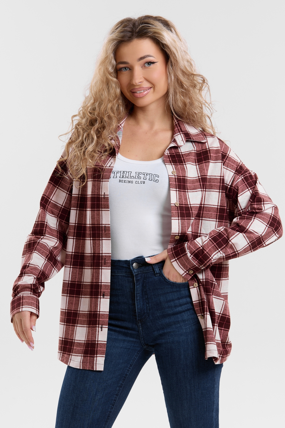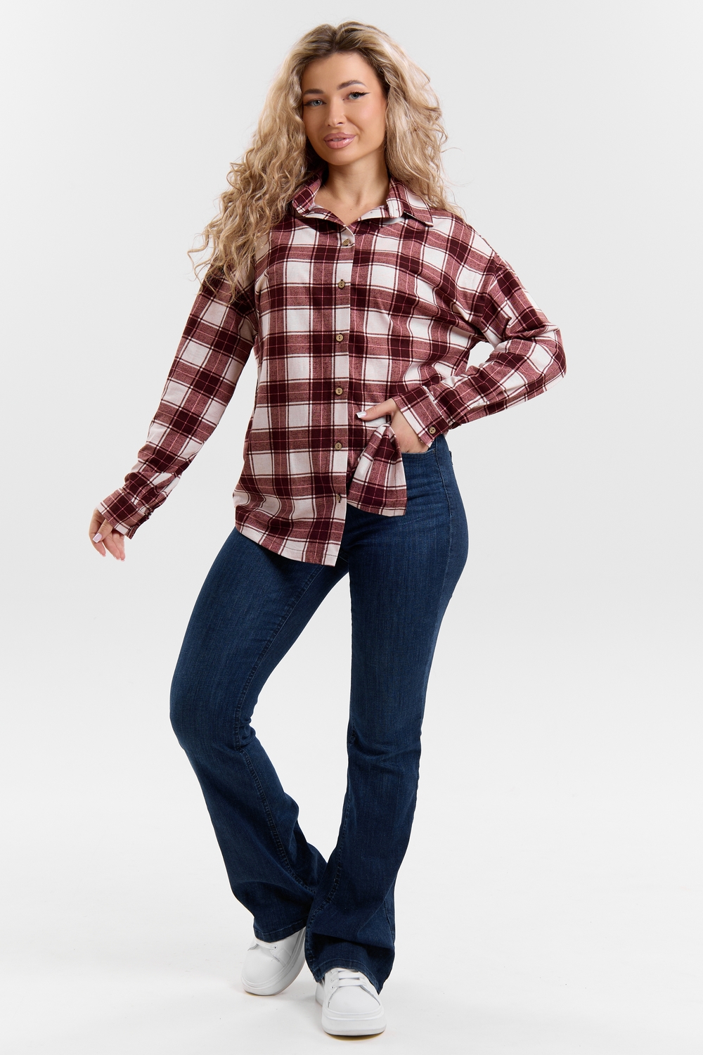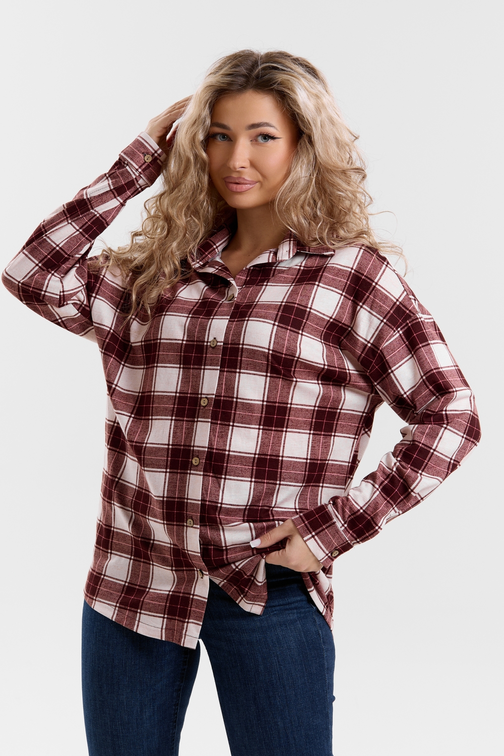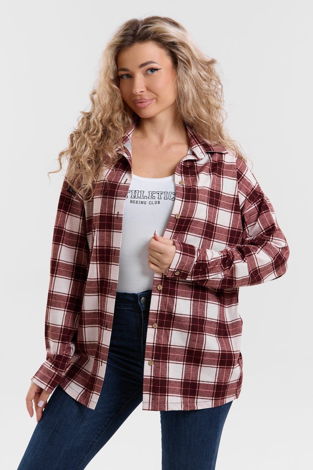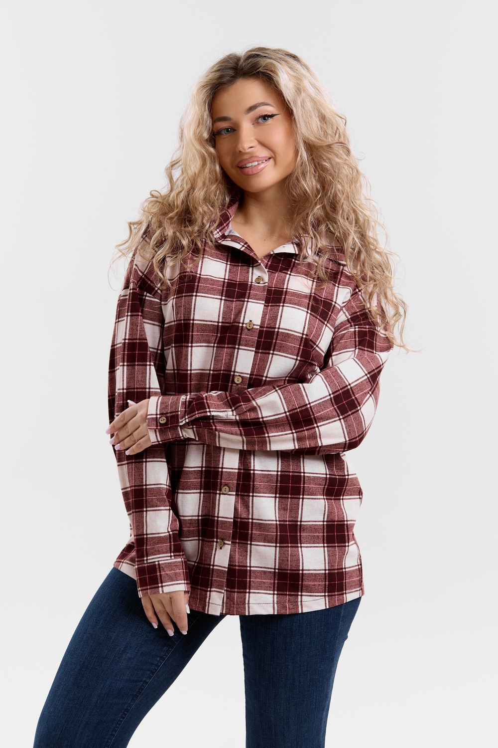 Модная рубашка в стиле oversize выполнена из качественного хлопчатобужажного материала в клетку. Рубашка такого плана делает любой образ уникальным и выразительным. Клетка будет самой актуальной в этом сезоне. Но будьте осторожны — в комплект к моделям с клеткой лучше выбирать однотонные вещи, чтобы не перегружать лук. Это одна из самых модных и популярных моделей сезона. Рубашка имеет слегка удлинённую спинку, спущенную линию плечевого шва, классический рубашечный воротник со стойкой, планку и манжеты на пуговках. За счёт свободного фасона рубашку можно носить с любым типом фигуры, отлично подойдёт для беременных женщин,  а также кормящих мам. Женская хлопковая рубашка идеальна как для лета, так и для прохладного вечера. С помощью такой рубашки Вы можете создать любой образ. А также отправиться на праздник или вечеринку, на прогулку, на пляж или провести незабываемый вечер дома. Модель такого плана идеально подойдёт и в качестве подарка для себя и своих любимых!   Современная туника - это почти неотъемлемая часть гардероба любой женщины, которая сделает Вас неотразимой в любой ситуации.