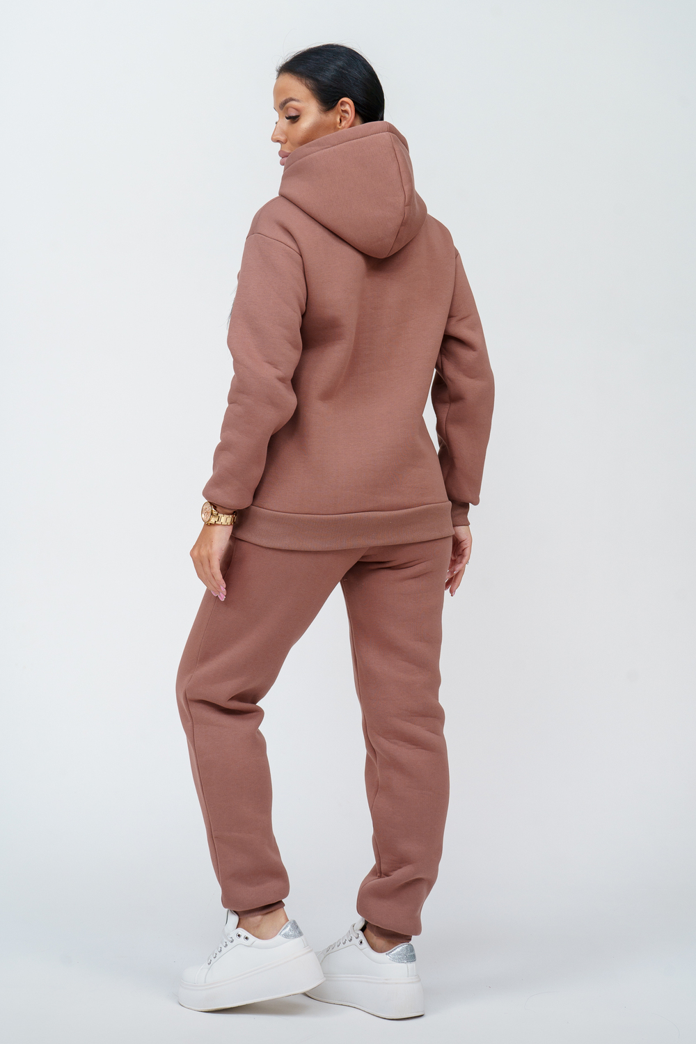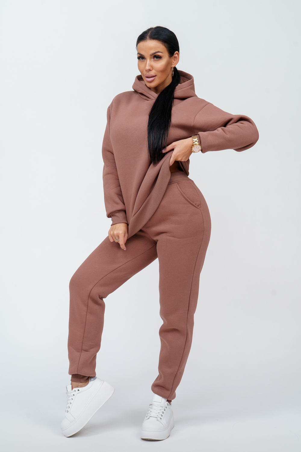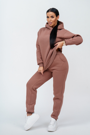 Костюм женский. Куртка со спущенным рукавом на манжете и двойным капюшоном. Брюки на притачном поясе с резинкой, по низу изделия манжета.
