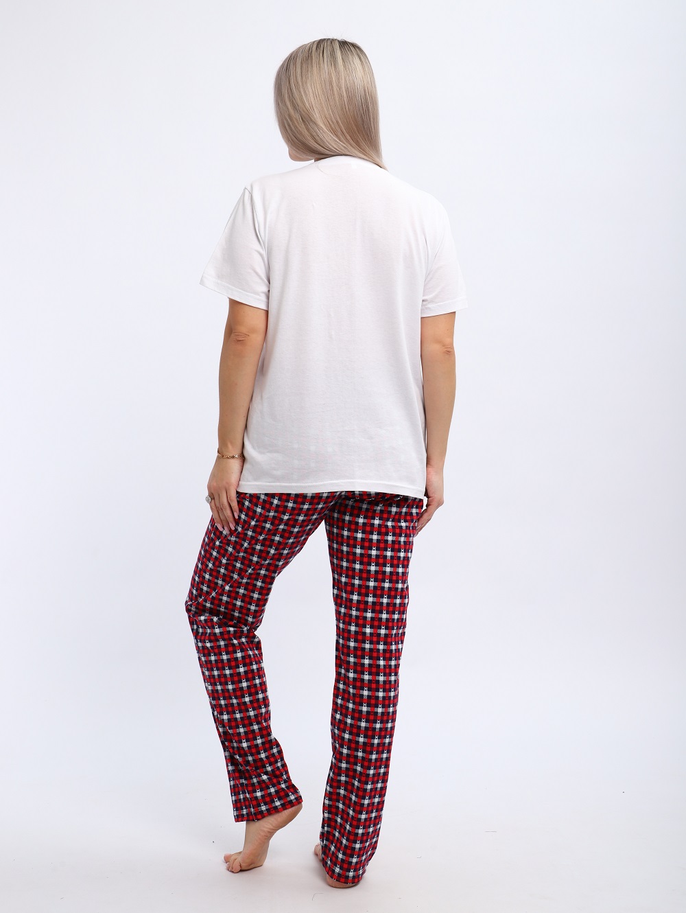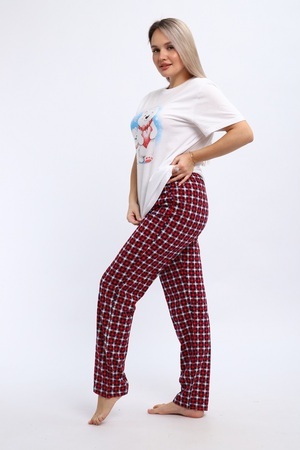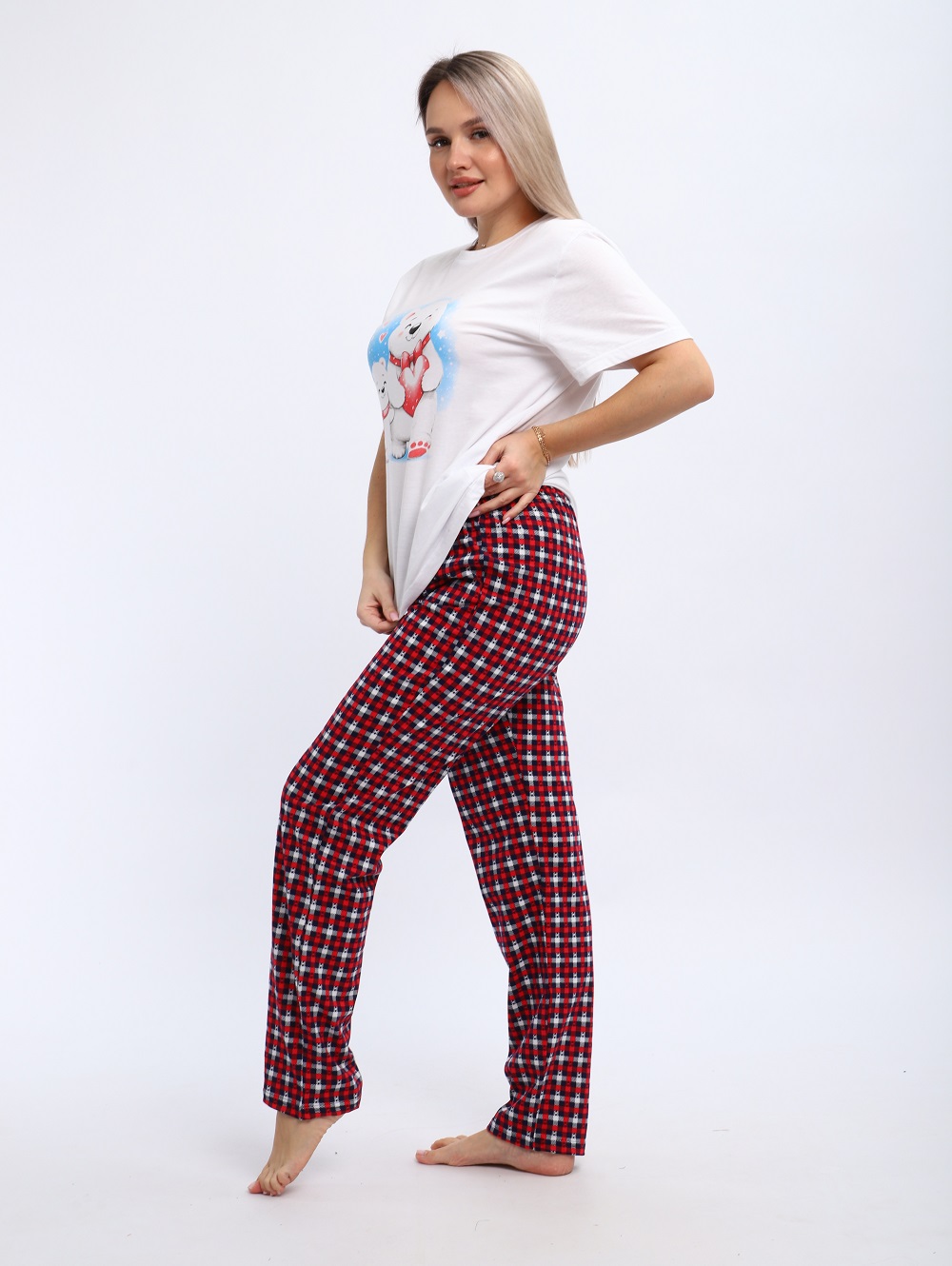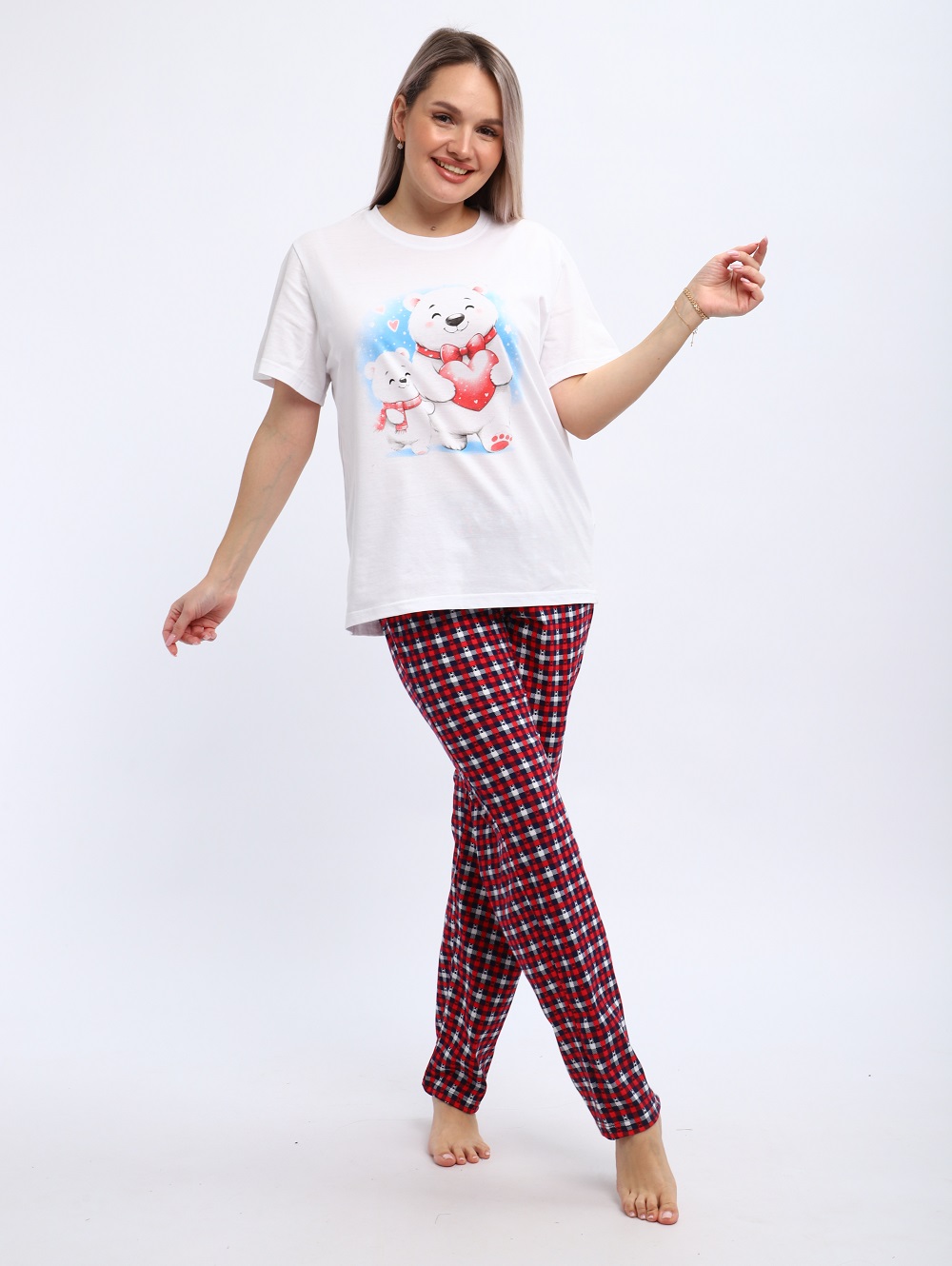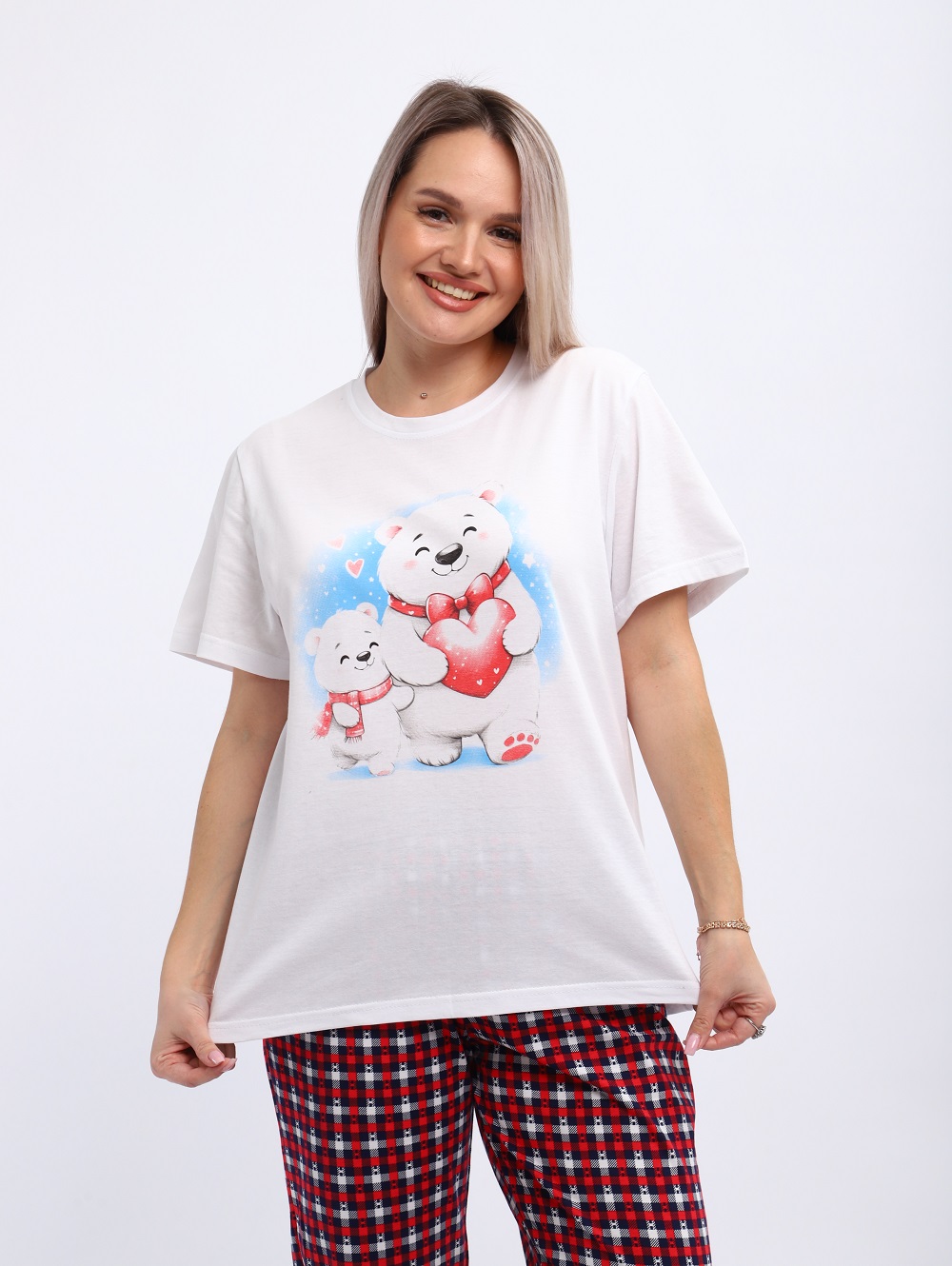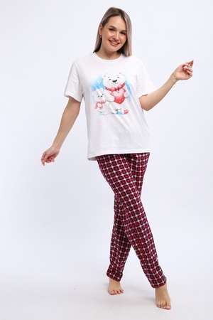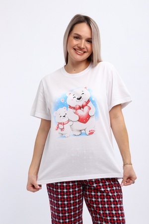 Комплект домашней одежды из футболки с принтом «Мишки» и пижамных брюк в клетку — прекрасный выбор для подарка по любому радостному поводу:
