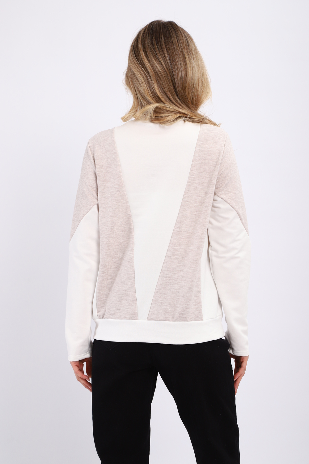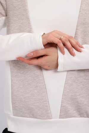 Оригинальная конструкция: Свитшот имеет асимметричный дизайн с диагональным разрезом, который придает ему современный и стильный вид. Этот элемент дизайна делает свитшот универсальным и подходящим для различных случаев – от прогулок до деловых встреч.