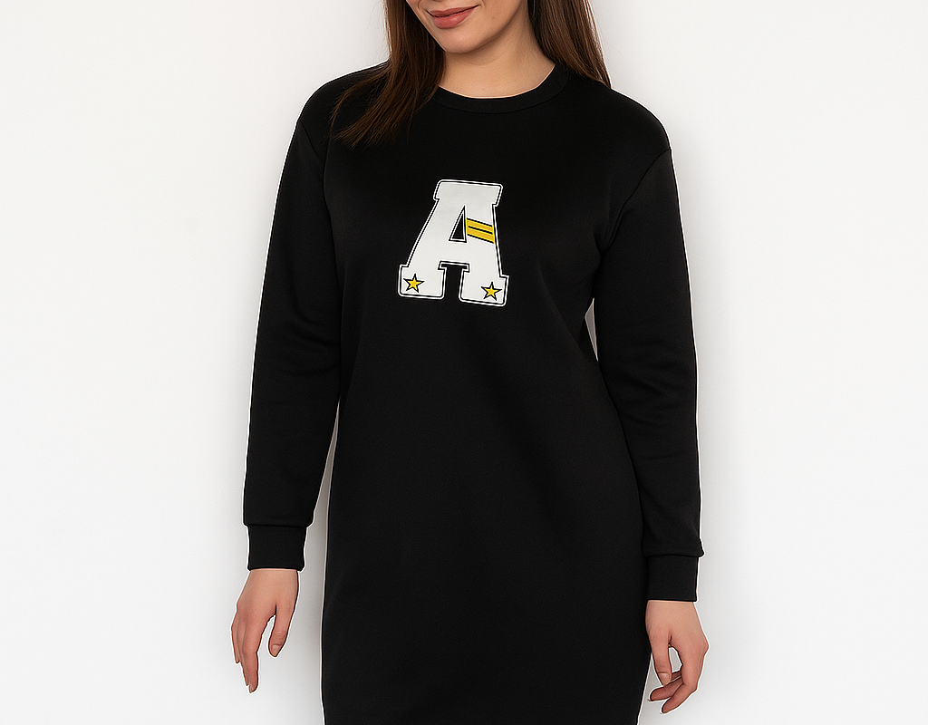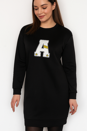 Туника женская удлиненная, теплая на флисе. Ярким акцентом на груди. Удобная и качественная.