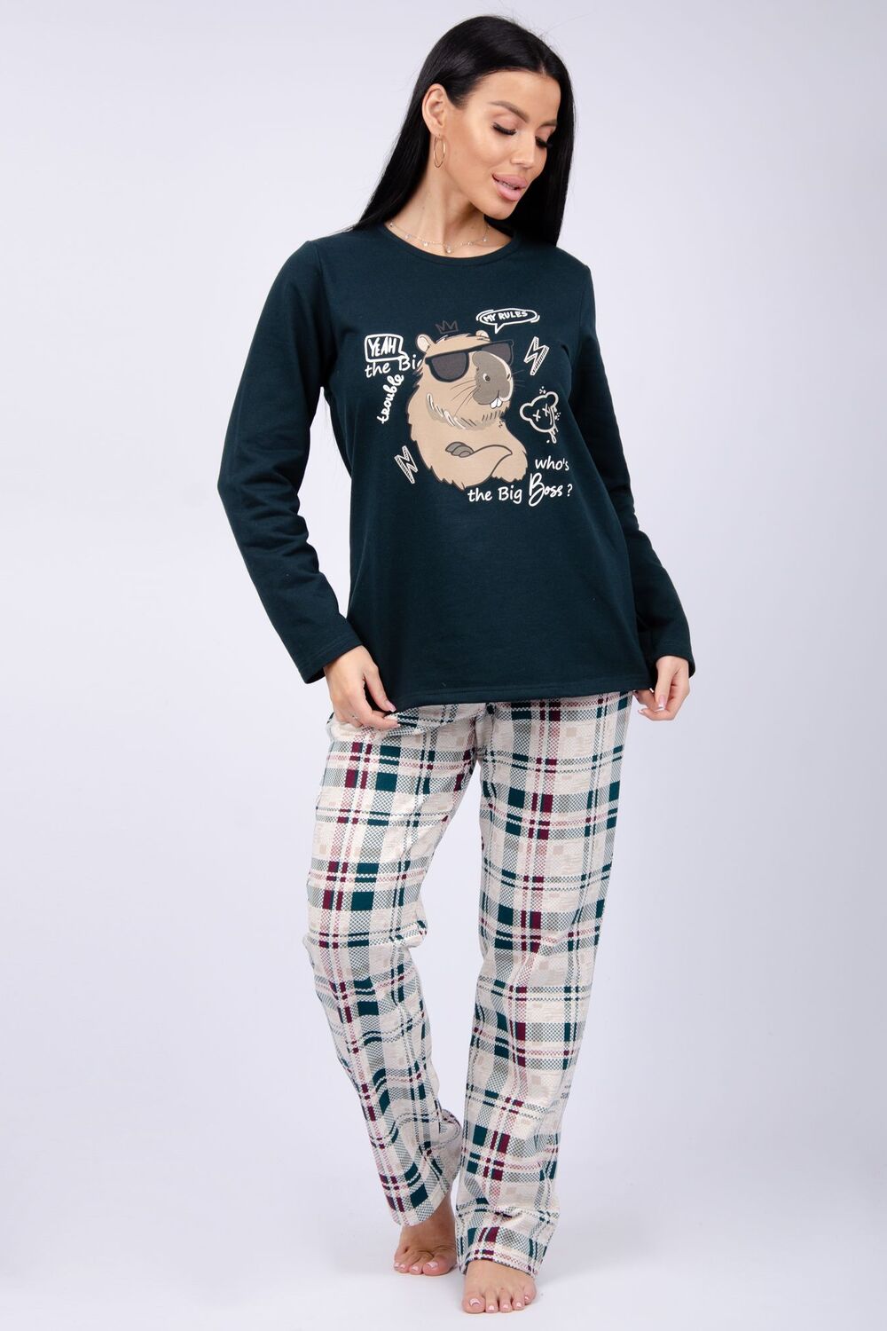 Эта теплая пижама женская с брюками – отличный выбор для уютных вечеров и сна. Она выполнена из мягкого натурального хлопка, который гарантирует комфорт и тепло в холодное время года. Благодаря умеренной плотности ткани, пижама женская подходит как для домашнего отдыха, так и для спокойных ночей и стильной пижамной вечеринки.