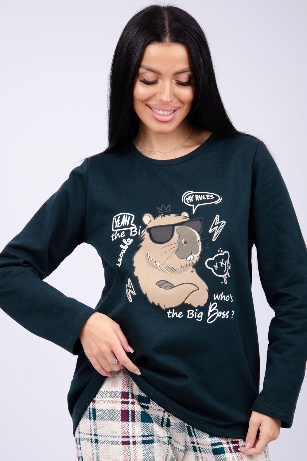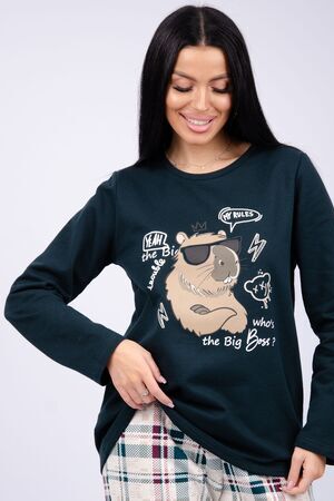 Эта модель доступна в больших размерах, поэтому идеально подойдёт для любых фигур. Удобный свободный крой не сковывает движения, позволяя чувствовать себя комфортно в любое время суток. Пижама женская с брюками особенно практична для зимних уикендов, когда так приятно завернуться в мягкую ткань и насладиться уютом.