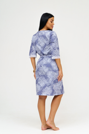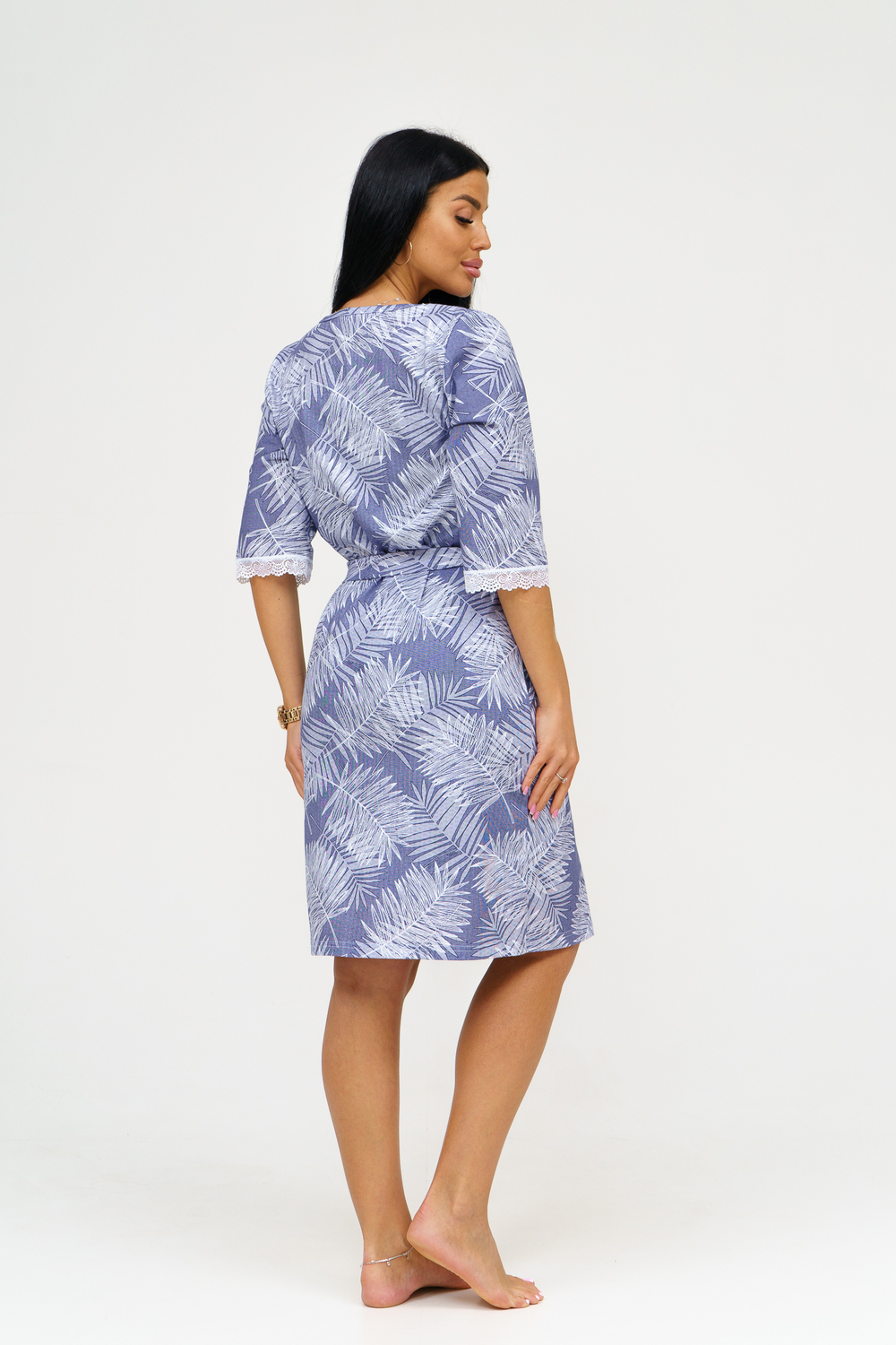 Пеньюар запашной с поясом и рукавом 3/4. Срезы и низ рукавов обработаны ажурным кружевом.