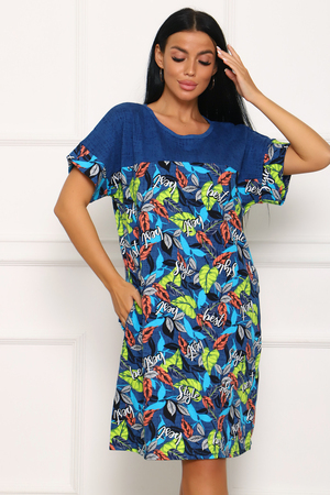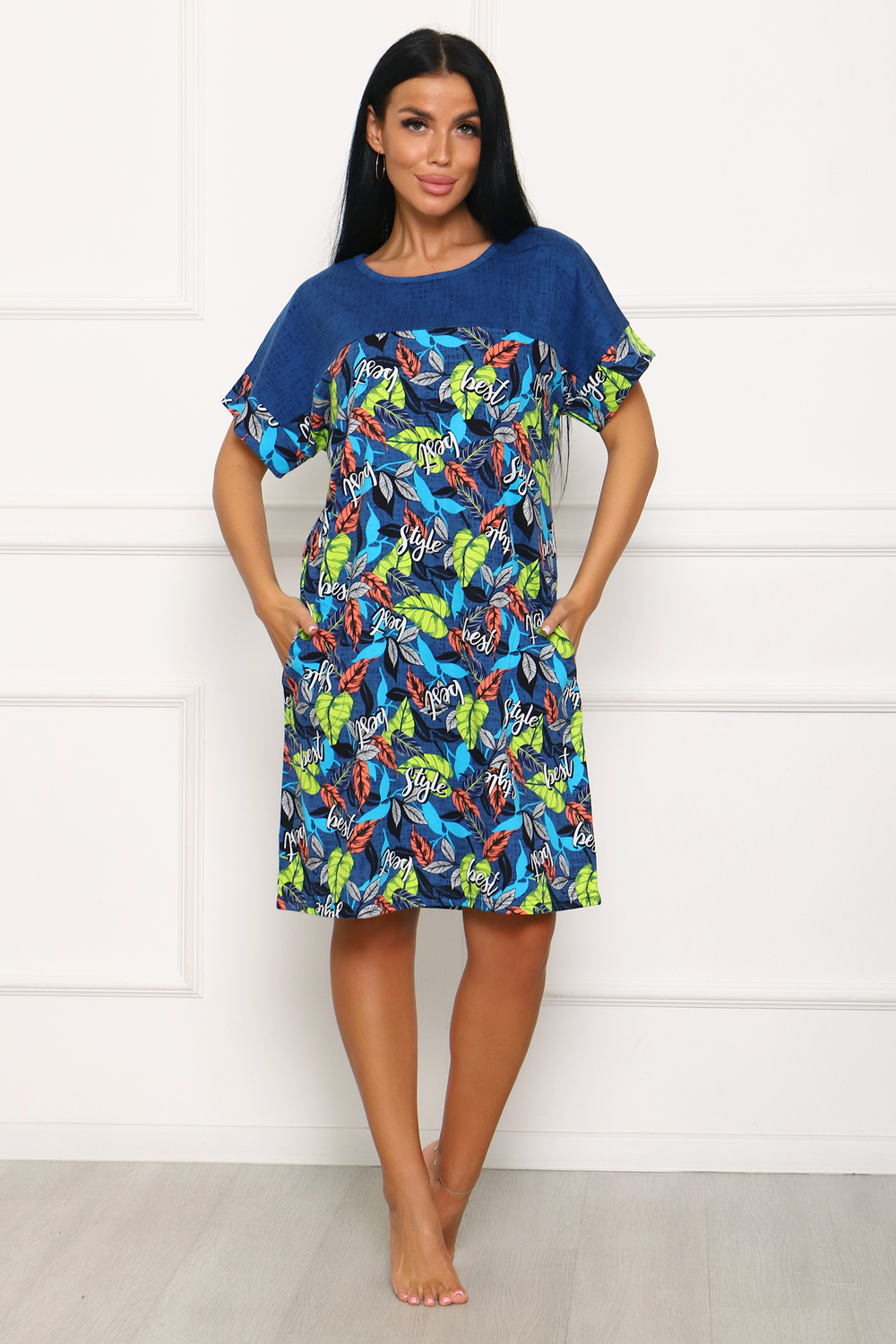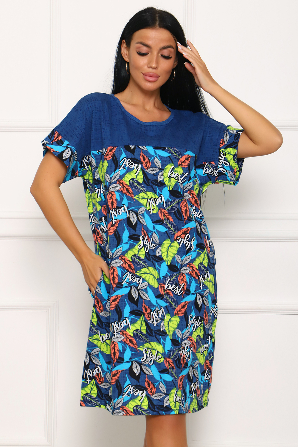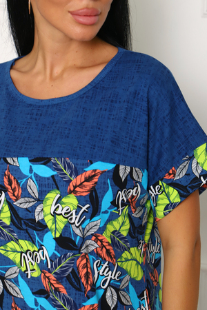 Стильная туника с контрастными кокетками. В боковых швах выполнены карманы, срезы рукавов обработаны манжетами.