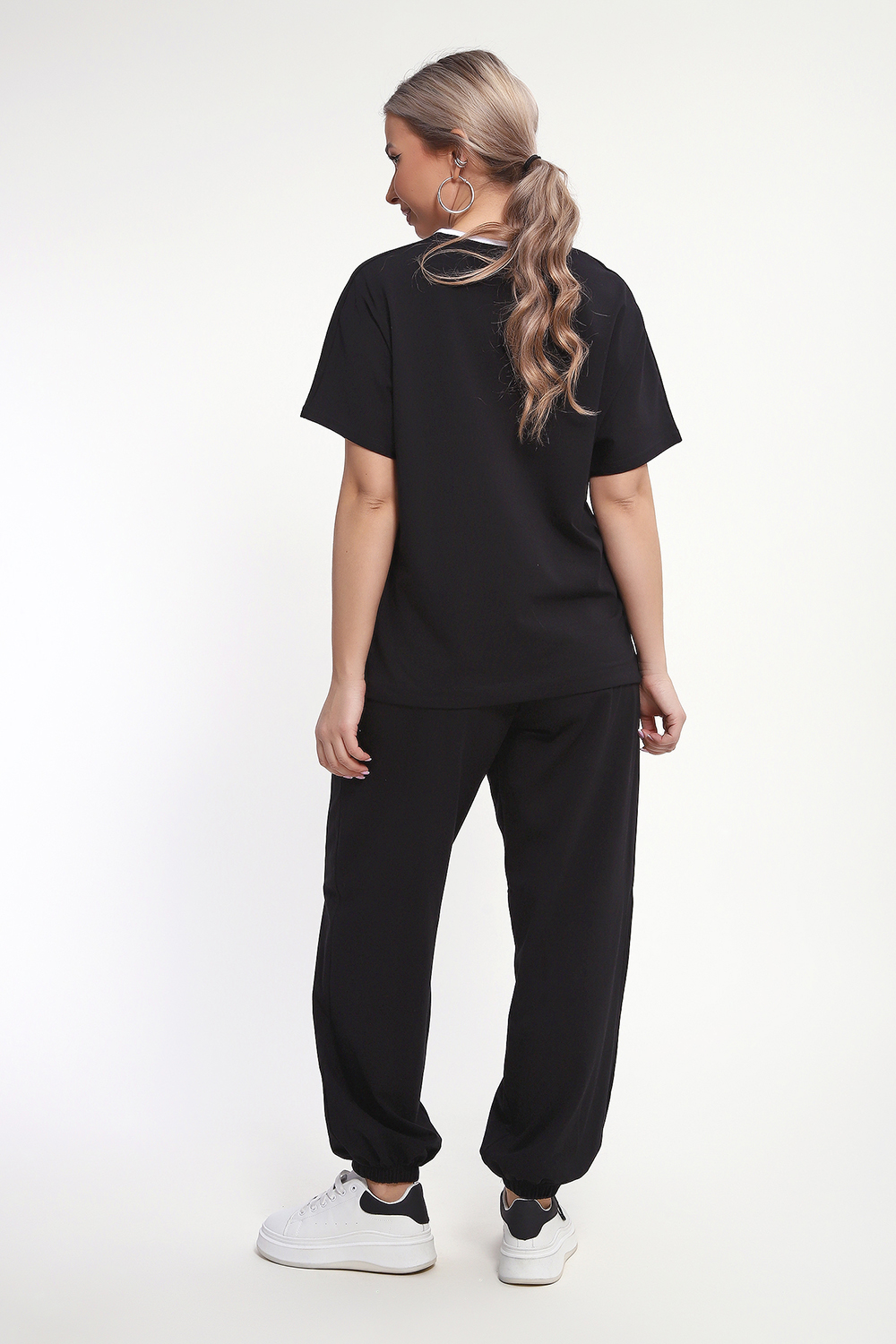 Модный, красивый и удобный костюмчик с брюками Алладинами. Костюм состоит из футболки и брюк. Рукав на футболке спущенный. На полочке принт в виде надписи, горловина обработана отбелочной тканью, по центру полочки отделочная тесьма. Низ у футболки на кулиске со шнурком, который регулируется по талии. Брюки алладины с мягкой широкой резинкой на талии и по низу изделия, свободного кроя со складочками спереди и карманами. Этот костюм станет отличным выбором для прогулок, встреч с друзьями или просто для комфортного отдыха дома!