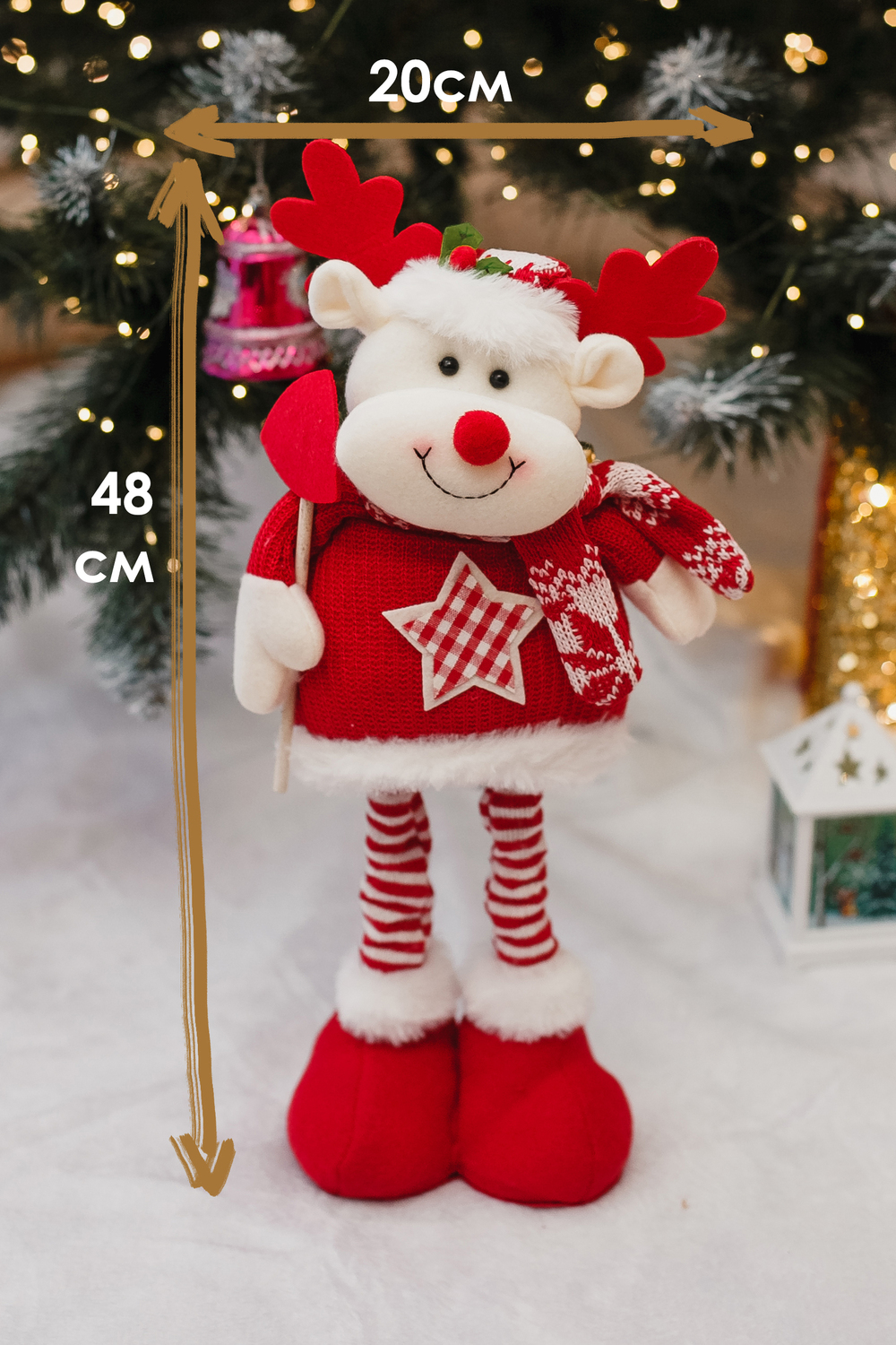 Новогодняя мягкая игрушка под елку с выдвижными ножками — эффектная и практичная праздничная игрушка, которая в сложенном виде занимает мало места, а при раздвинутых ножках превращается в высокий декоративный элемент. Выполнен из мягкого текстиля с аккуратной отделкой и плотным наполнителем, он легко держит форму, при этом остаётся лёгким и удобным для транспортировки и размещения под ёлкой или в праздничной фотозоне. Выдвижные ножки дают два варианта использования — компактное хранение вне сезона и выразительная высота для декора, что делает игрушку отличным подарком, который приятно будет дарить и получать. Универсальный дизайн впишется в классические и современные новогодние интерьеры, игрушка подойдёт для украшения гостиной, детской комнаты, прихожей или коммерческих витрин. Уход простой — достаточно протирать мягкой сухой или слегка влажной тканью и хранить в сухом прохладном месте вдали от прямых источников тепла. При размещении рядом с детьми рекомендуем следить за мелкими декоративными деталями и устанавливать снеговика на устойчивой поверхности. Идеальная идея для тех, кто ищет красивый, компактный в хранении и в то же время эффектный подарок под ёлку, который создаёт праздничное настроение и добавляет уюта в дом.