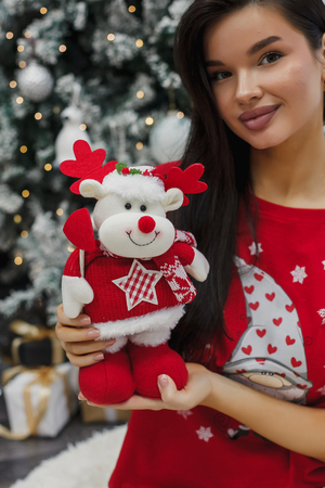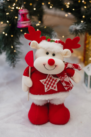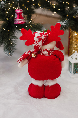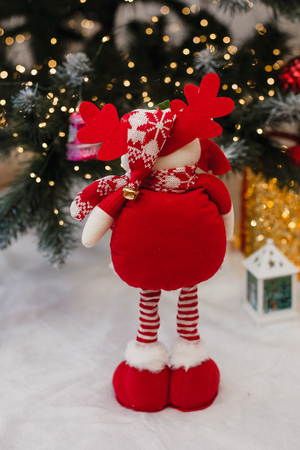 Модель: Игрушка новогодняя с выдвижными ногами Олень с лопатой красный