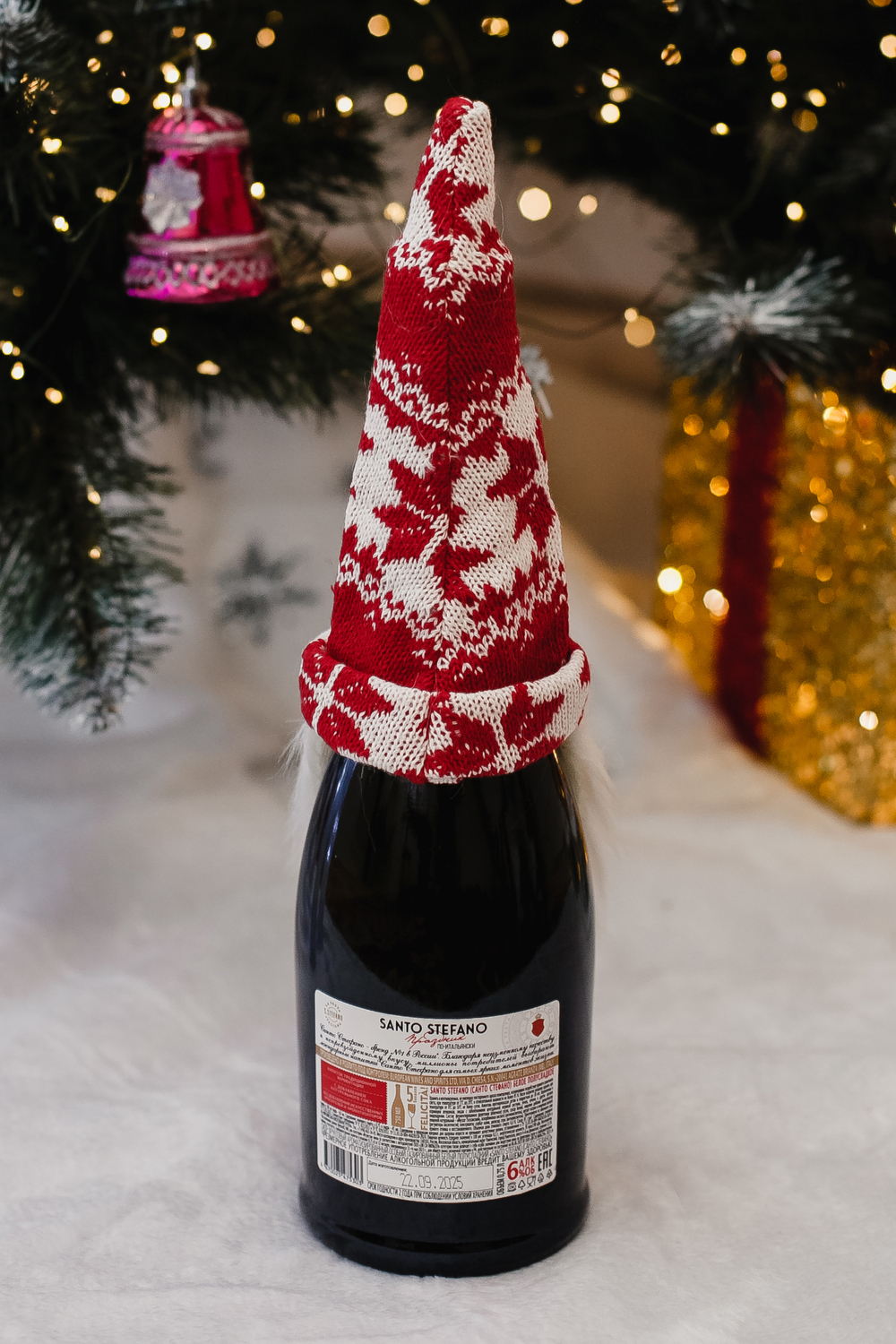 Новогодний текстильный чехол на бутылку в виде колпака — это стильная и практичная упаковка для бутылок вина и шампанского, изготовленная из плотного многоразового вязаного текстиля с аккуратной вшитой бородой и рисунком, который придаёт изделию праздничный и уютный вид. Чехол легко фиксируется, надёжно удерживается на бутылке стандартного объёма (≈0,7–1,0 л), защищает этикетку при переноске и сразу превращает обычную бутылку в эффектный подарок. Этот чехол идеален как самостоятельная праздничная упаковка или как дополнение к подарочному набору. Он универсален по стилю и подойдёт для дома, офиса или корпоративных мероприятий, а яркий рисунок новогодних гномов привлекает внимание покупателей и создаёт тёплую атмосферу праздника. Материал долговечен и прост в уходе — рекомендуется ручная стирка или деликатный режим при 30°C, не отбеливать и не выкручивать, при необходимости аккуратно разгладить. Изделие многоразовое, экологичное и занимает мало места при хранении. Используйте чехол для оформления новогоднего стола, в качестве подарочной упаковки для гостей и коллег или как праздничный аксессуар для фотозон. Он станет запоминающейся деталью праздника и удобным решением для тех, кто ценит сочетание практичности и дизайна. Добавьте в корзину прямо сейчас, чтобы сделать любой подарок более праздничным и выразительным.