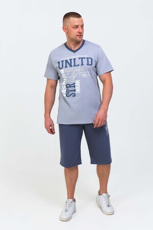 Домашний костюм футболка с бриджами. Футболка с оригинальным принтом, V - образный вырез, короткий втачной рукав. Бриджи с карманами, длина до коленей. Покрой изделия обеспечивает свободу движения, а материалы прекрасно пропускают воздух и очень приятны к телу.