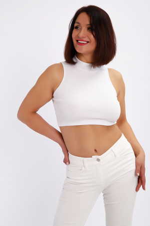 Топ женский со стойкой. Данная модель выполнена из эластичного трикотажного полотна кашкорсе (хлопок 98%, лайкра 2%). пройма обработана окантовкой из основной ткани. Очень приятная ткань, износостойкая. Отлично подходит как для поdседневной носки, так и для спорта.