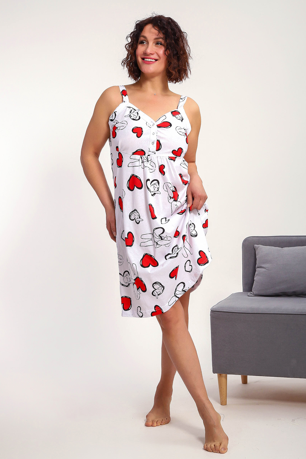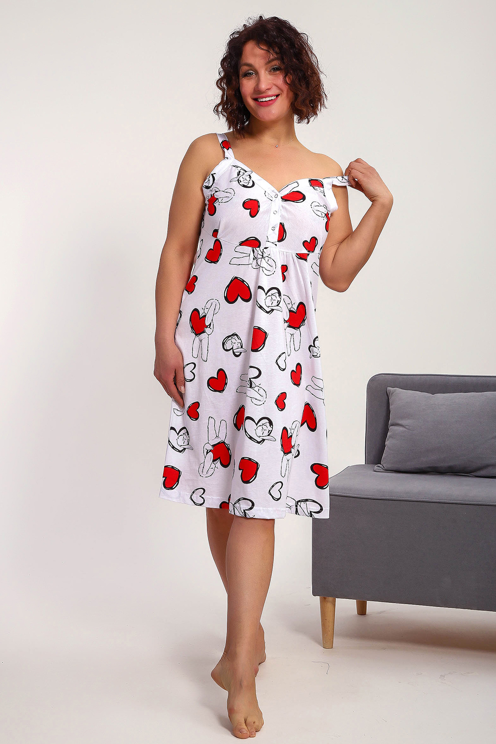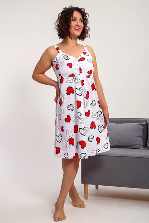 Сорочка женская без рукава на широких брителях . Данная модель выполнена из трикотажного полотна кулирка ( хлопок 100%). Полочка отрезная с кнопками. Горловина обработана широкой окантовкой. Отличная модель для сна и кормления.