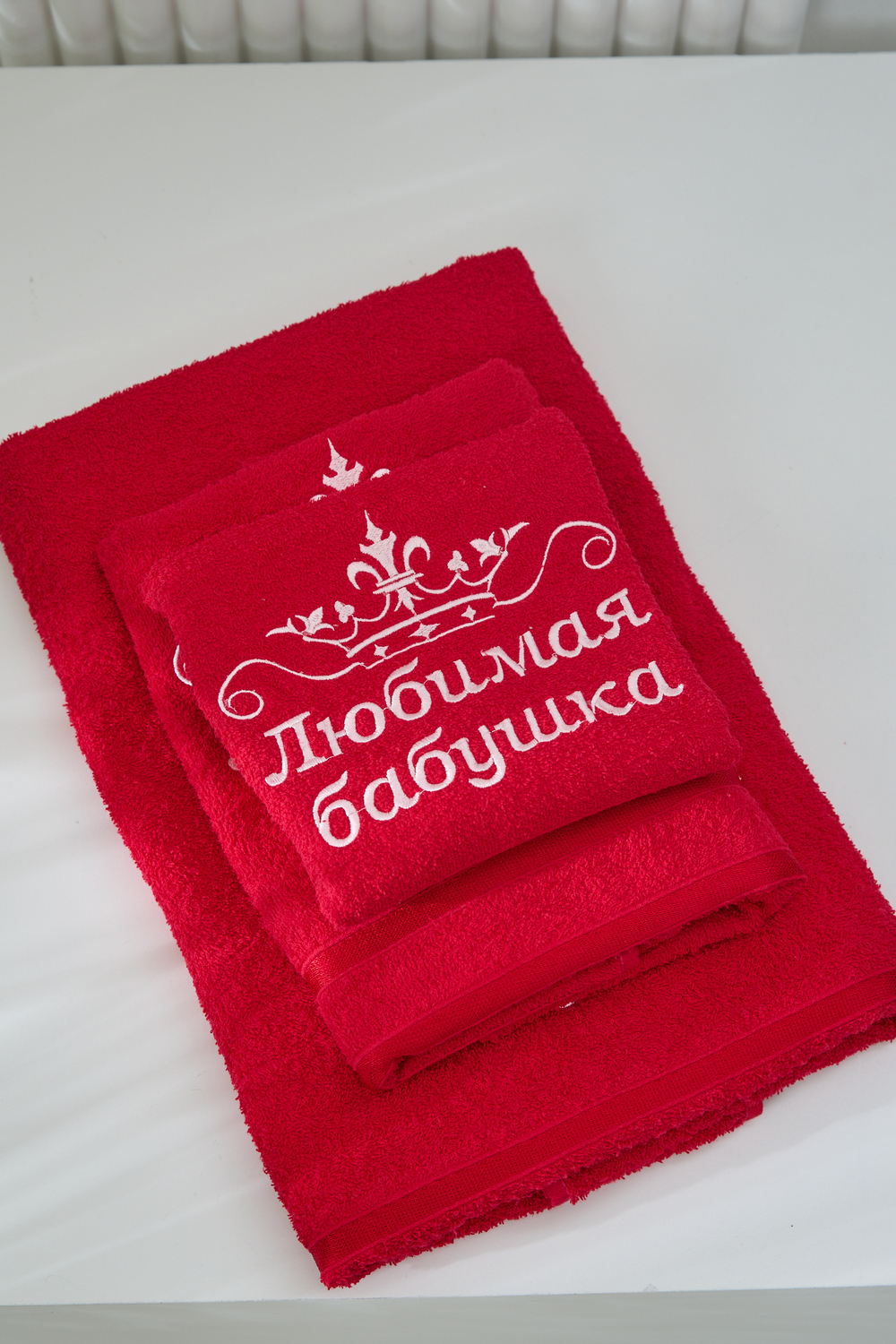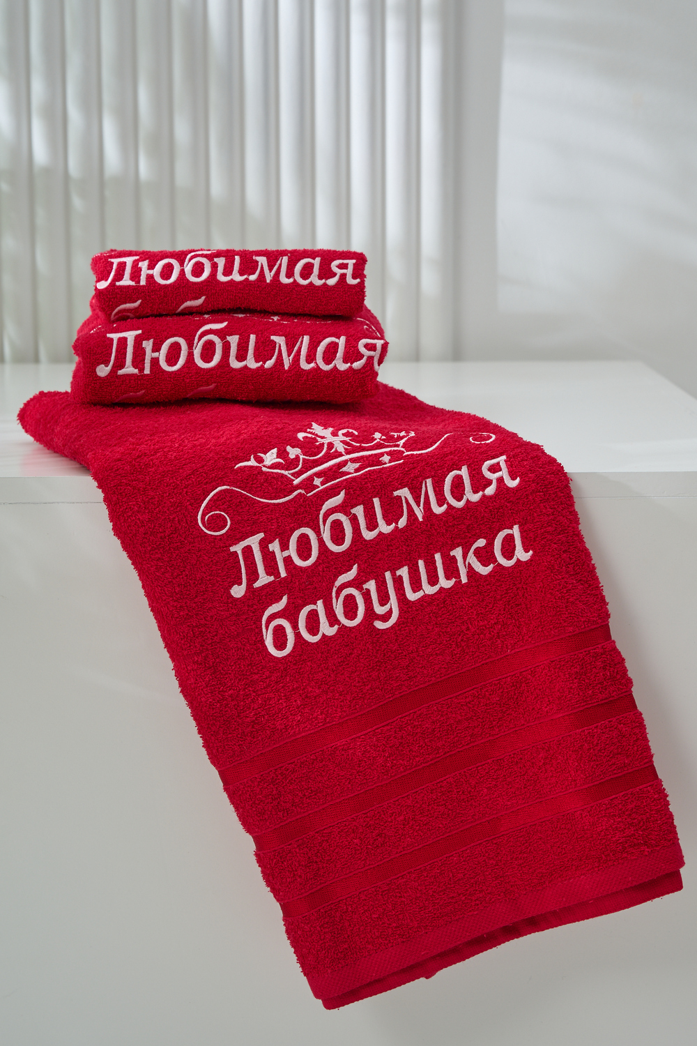 Мягкие махровые полотенца нежно-розового цвета с вышивкой “Любимая бабушка” — идеальный подарок для самой важной и любимой женщины! Комплект из трёх полотенец порадует уютом и заботой, добавит уюта в ванную комнату и каждый день будет напоминать бабушке о вашей любви и внимании. Отлично подходит для подарка на день рождения, юбилей или просто без повода. Полотенца отлично впитывают влагу, приятны на ощупь и сохраняют мягкость даже после множества стирок.