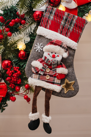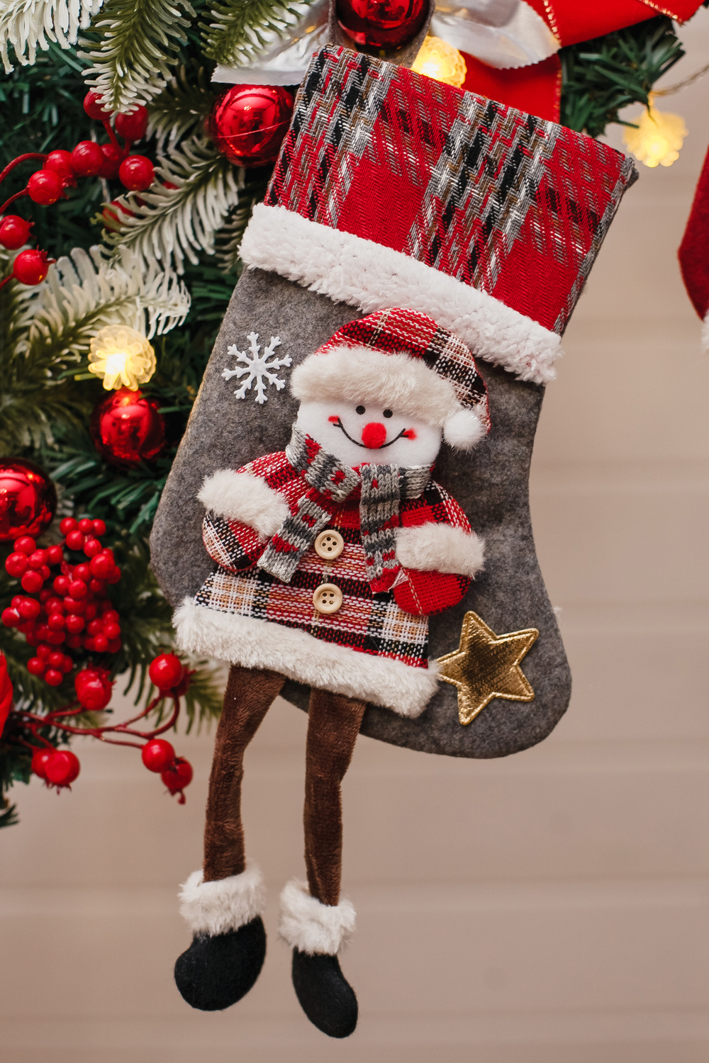 Главная фишка модели — висячие ножки. Ножки добавляют динамики при подвешивании и создают игривый акцент на камине, поручне или ёлке. Верхний край снабжён петлёй для подвеса.