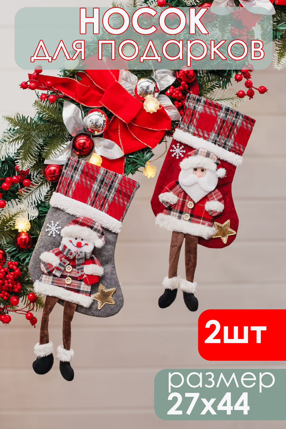 Новогодние носки для подарка Дед мороз и Снеговик 2 шт