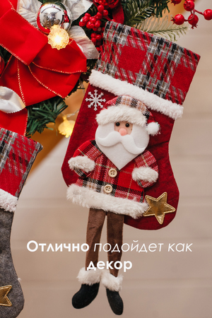 Это отличный выбор для семейной упаковки, корпоративных наборов и тематических подарков. Носок выглядит как самостоятельный подарок. Сапожек новогодний — не просто упаковка: он сам по себе становится частью подарка и может использоваться снова и снова.