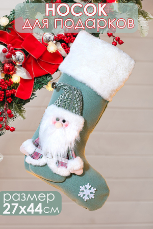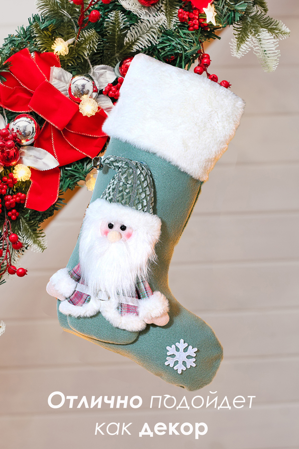 Модель: Новогодний носок для подарков зеленый Дед мороз 1 шт