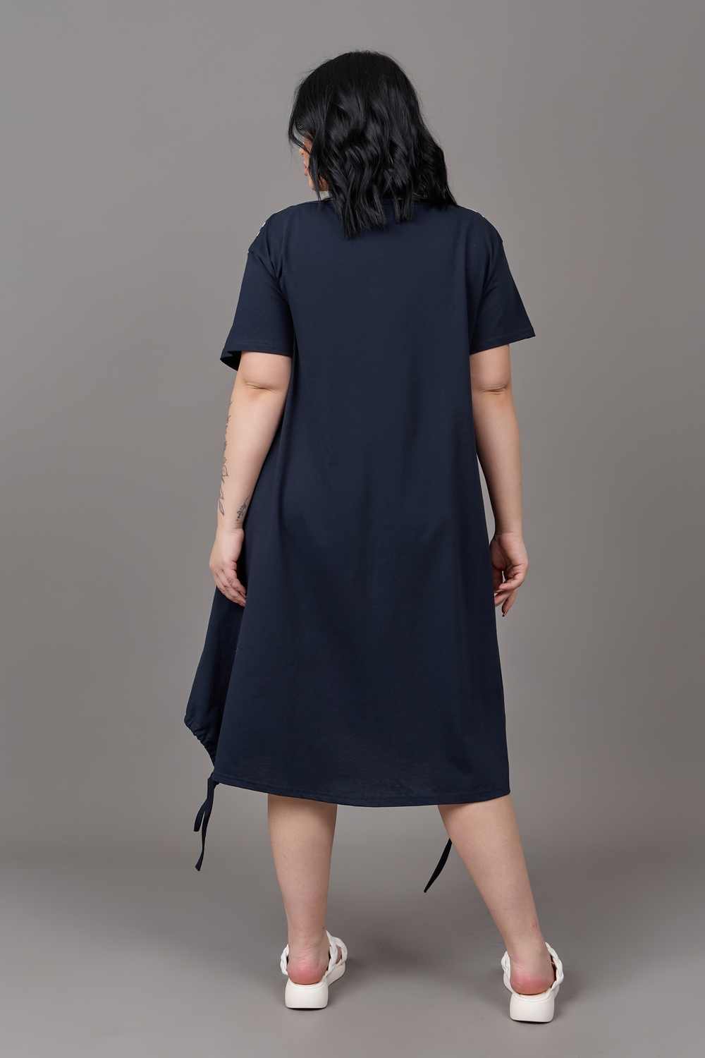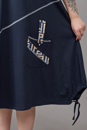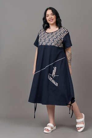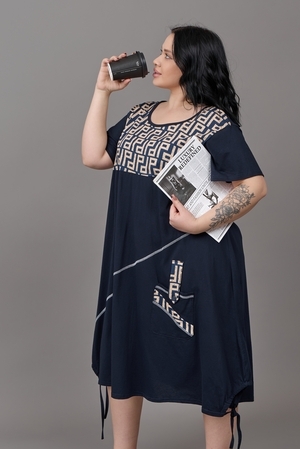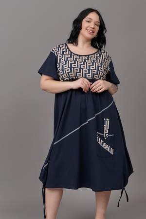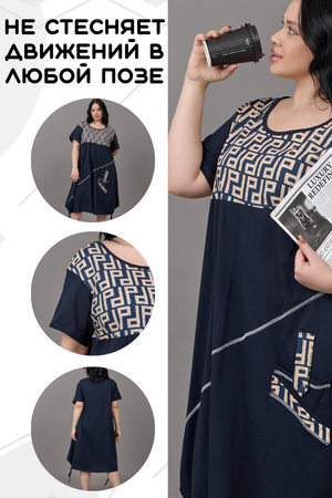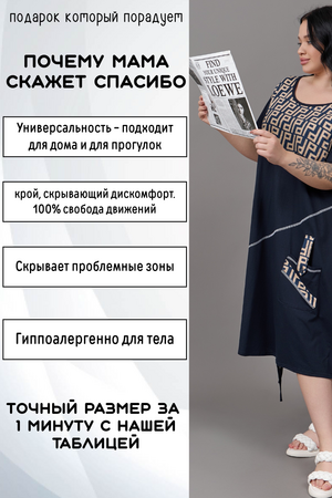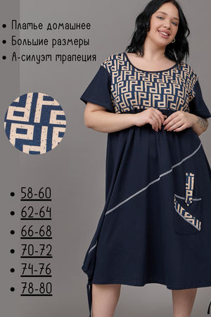 Представляем вам уютное домашнее платье больших размеров созданное для комфорта и стиля в каждый день. Это хлопковое платье свободного кроя с расклешенной юбкой миди идеально подойдет для женщин plus size, обеспечивая свободу движений и ощущение легкости. Черный цвет с классическим рисунком "гусиная лапка" придает ему элегантный вид, а округлый вырез горловины и рукава 3/4 добавляют женственности. Наличие накладных карманов - практичный бонус для хранения мелочей. Свободный покрой и мягкий ивановский трикотаж из 100% хлопка подарят вам максимальный комфорт в течение дня. Это платье станет незаменимым спутником для отдыха дома, создавая атмосферу уюта и расслабленности.