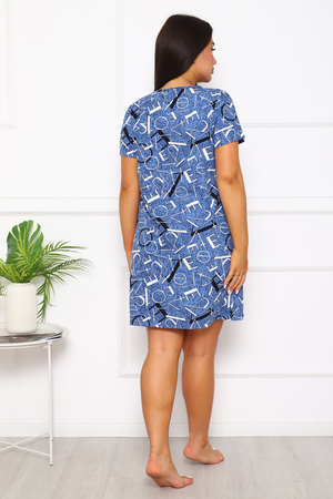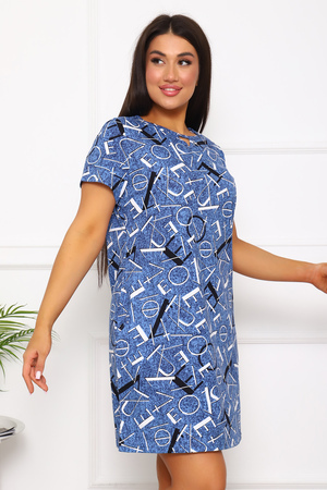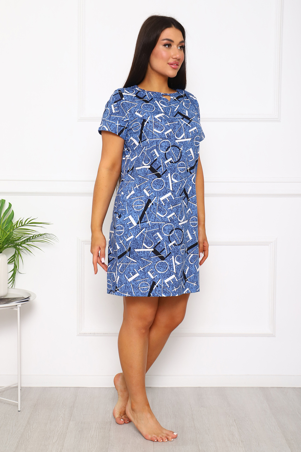 Туника женская прямого покроя. На горловине переда декоративный разрез. Вырез горловины в форме «лодочки». В боковом шве — карманы.